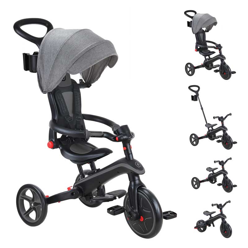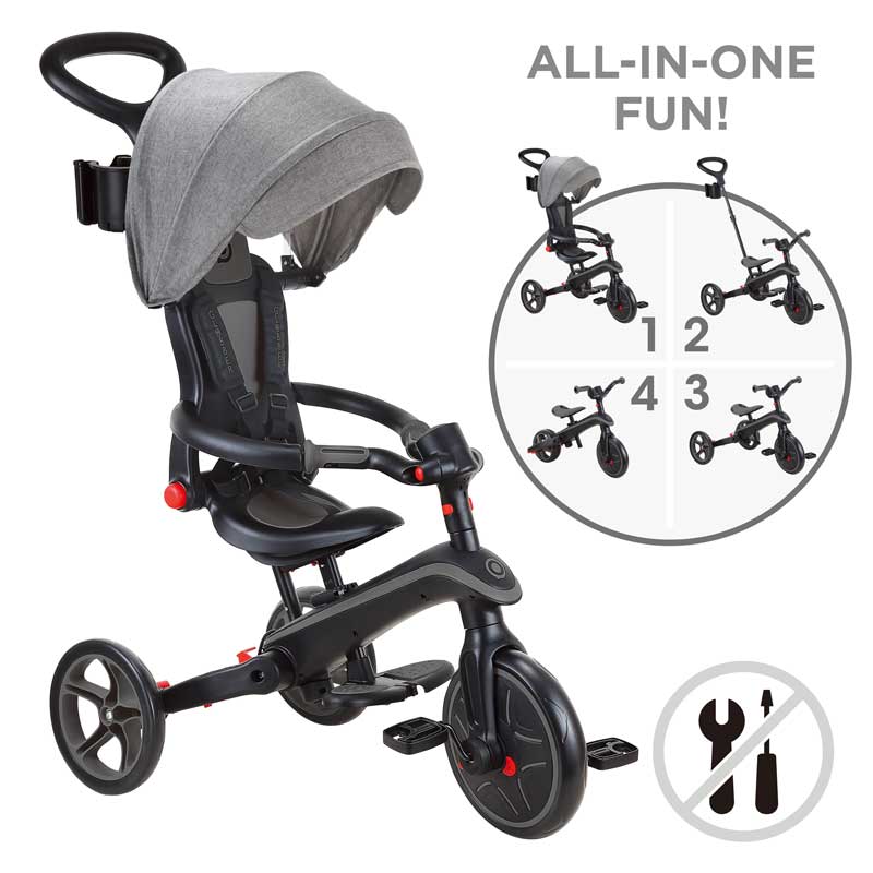 Класическият EXPLORER TRIKE на Globber, сега сгъваем! Изследвайте света навън с малчуганите си където и да е и когато и да е! Тази триколка за малки деца от серията EXPLORER TRIKE FOLDABLE е сгъваема и представлява „всичко в едно“ продукт за малки и големи деца на възраст от 10 месеца до 5 години. Тя предлага 4 различни режима за употреба: