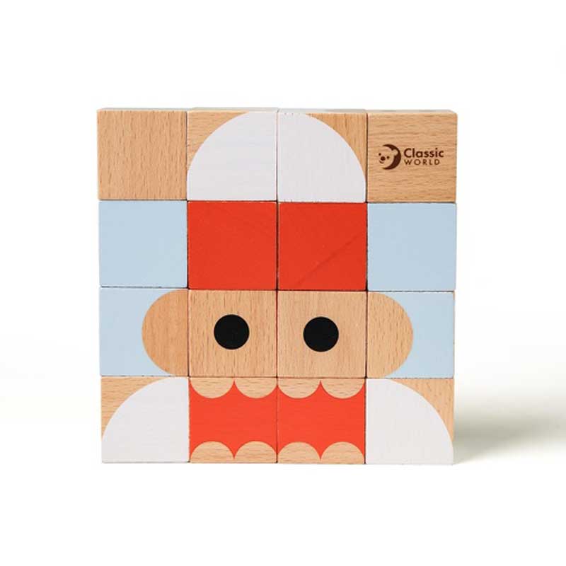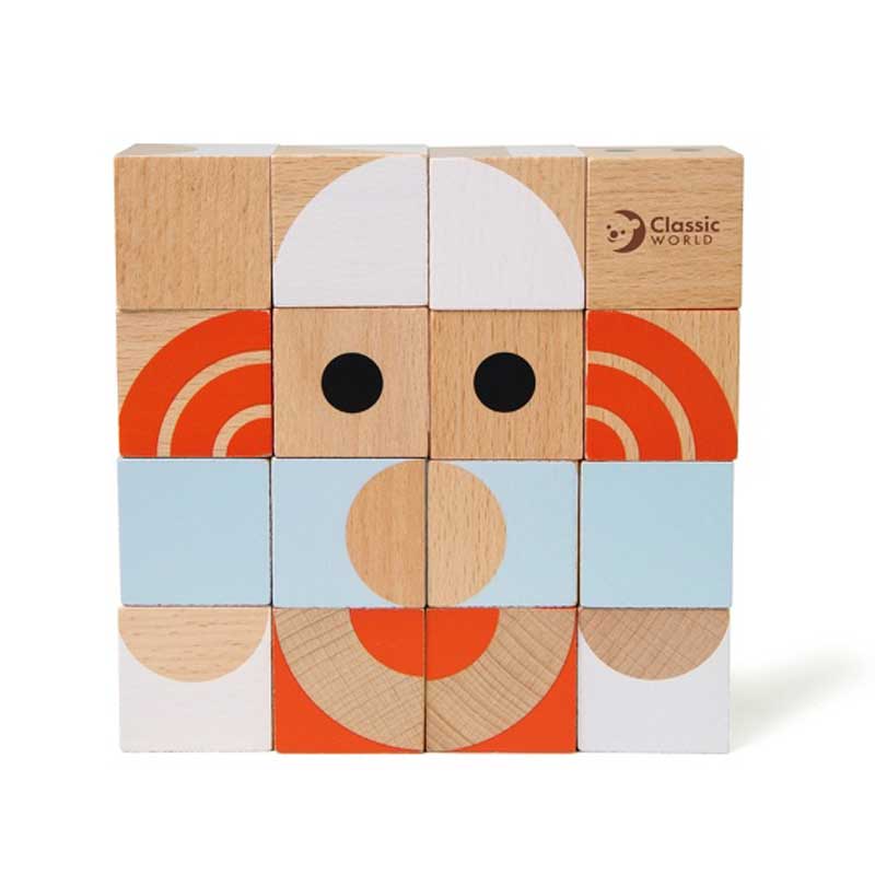 Забавен пъзел от 16 дървени кубчета с различни геометрични фигурки, които всяко дете може да сглоби. С него малчуганите развиват логическото си мислене, творчество и креативност, създавайки различни цветни форми. Играейки с дървения пъзел детето развихря представите си за геометричните модели, тяхното създаване, следвайки инструкциите и изработването на интересни и забавни фигури. Дървеният пъзел е иновативен и ще научи децата да изграждат, подреждат и създават свои собствени графики.