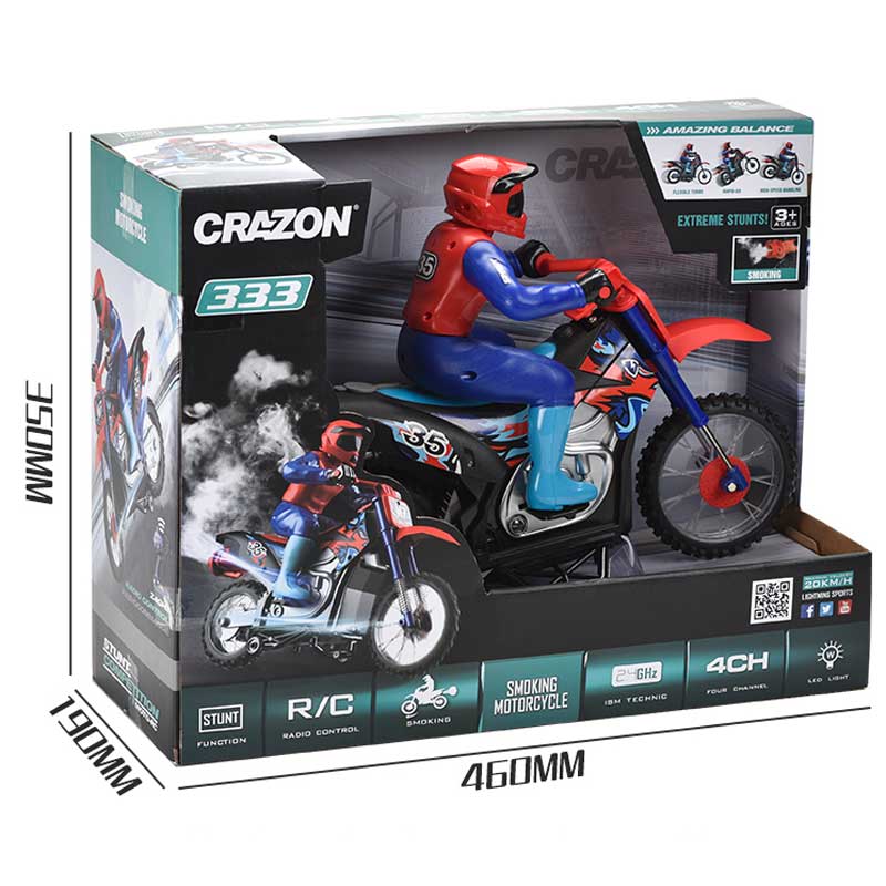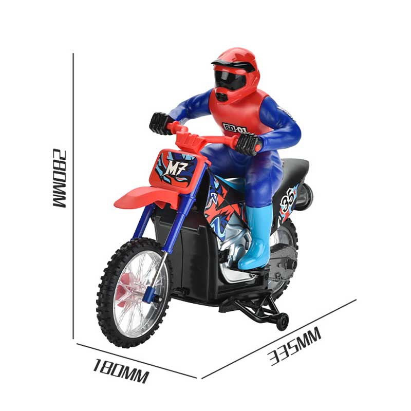 Моторът впечатлява с внушителни размери: дължина 335 мм, ширина 180 мм и височина 280 мм, като предлага стабилен корпус и пилот. Играчката пресъздава движението по пистата с професионален размах – от бързи ускорения до смели дрифтове, подкрепени от LED ефекти и пушек, които излизат от задната част на мотора.