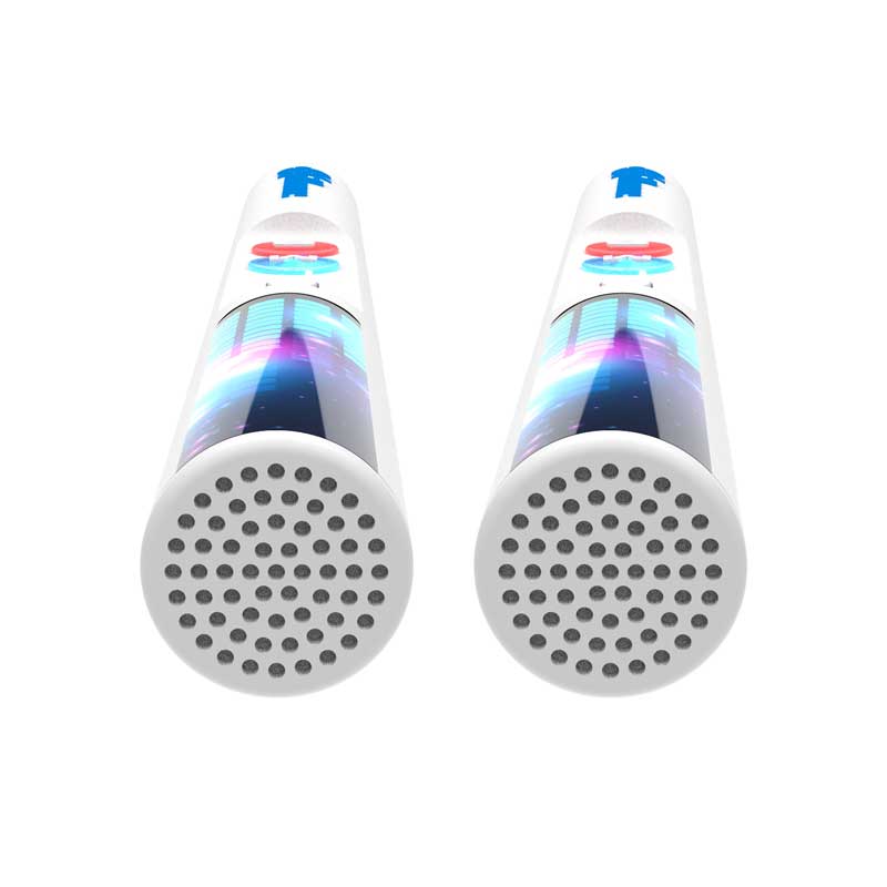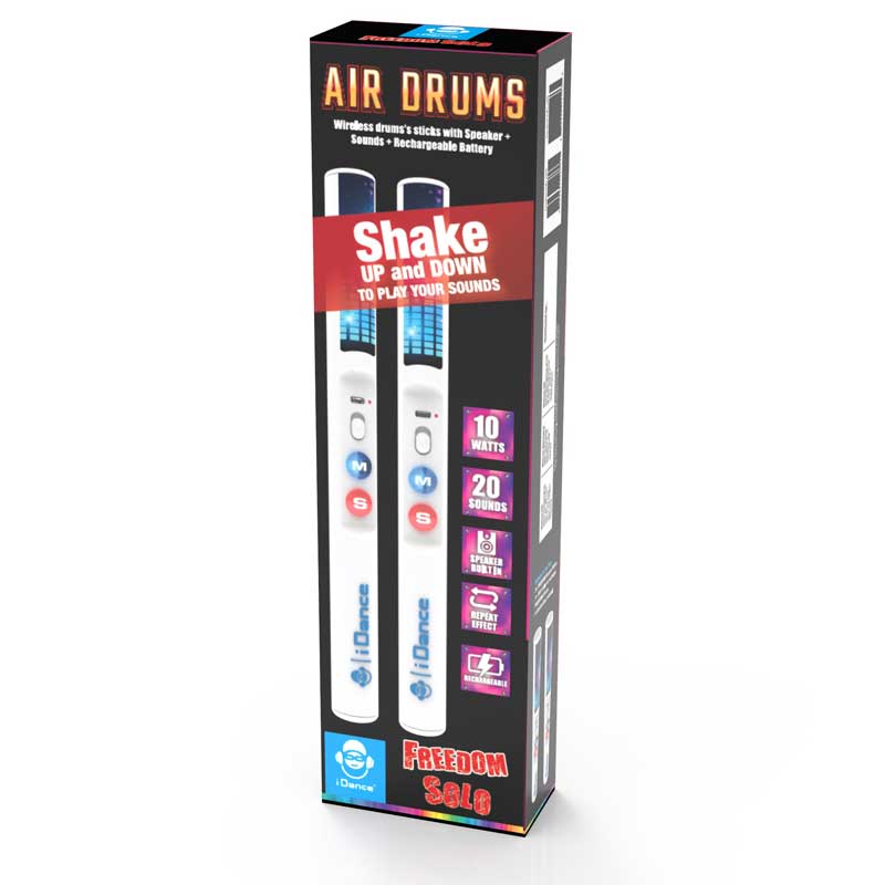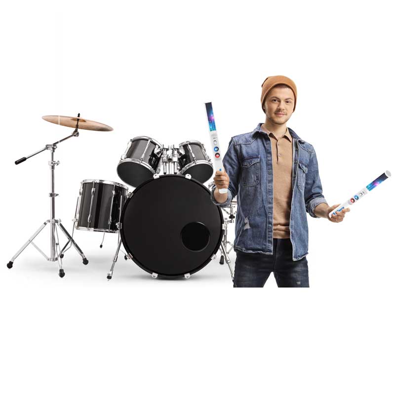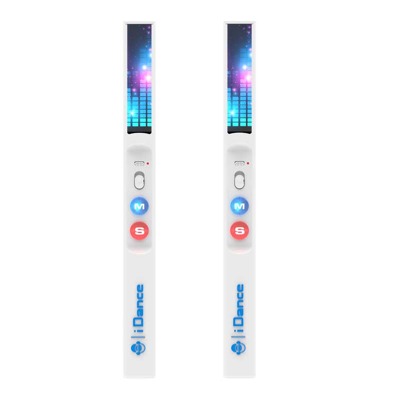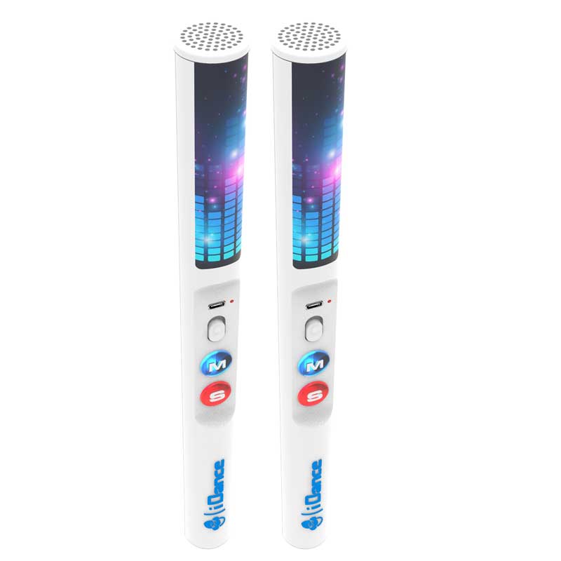 iDance детски палки за барабани в страхотен бял цвят, създават най-добрите мелодии, само с едно замахване! Разклати ги нагоре-надолу и бъди най-добрия барабанист в компанията. В тях са включени 20 различни мелодии, които се сменят с натискане на бутон, като можеш да избираш няколко режима: hi hat, Tom 2, Acapella, Kick Drum 1 и др. Палките съдържат вградени тонколонки, с кристалночист и ясен звук, както и USB кабел за лесно зареждане. Регулирай силата на звука и повтаряй твоите любими песни с бутоните. Така ще впечатлиш приятели си със силен звук и ярки светлинни ефекти. Запечатай всички забавни музикални моменти с палките за барабани от iDance.