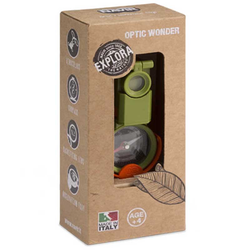 Многофункционален детски уред за наблюдение 7 в 1, съдържащ в себе си бинокъл, лупа, компас, увеличително огледало, базова плоча за наблюдение и експерименти, сигнално огледало и стереоскоп. С него малчуганът ви ще има възможността да държи всичко под контрол, като си измисля забавни игри и шпионски предизвикателства.