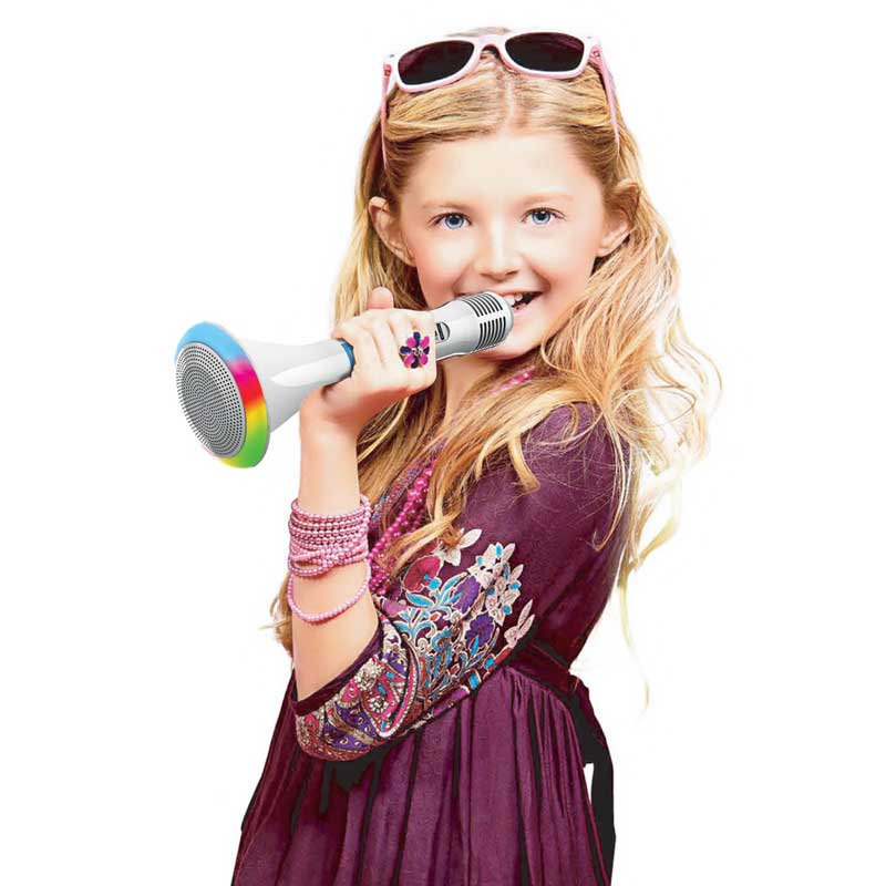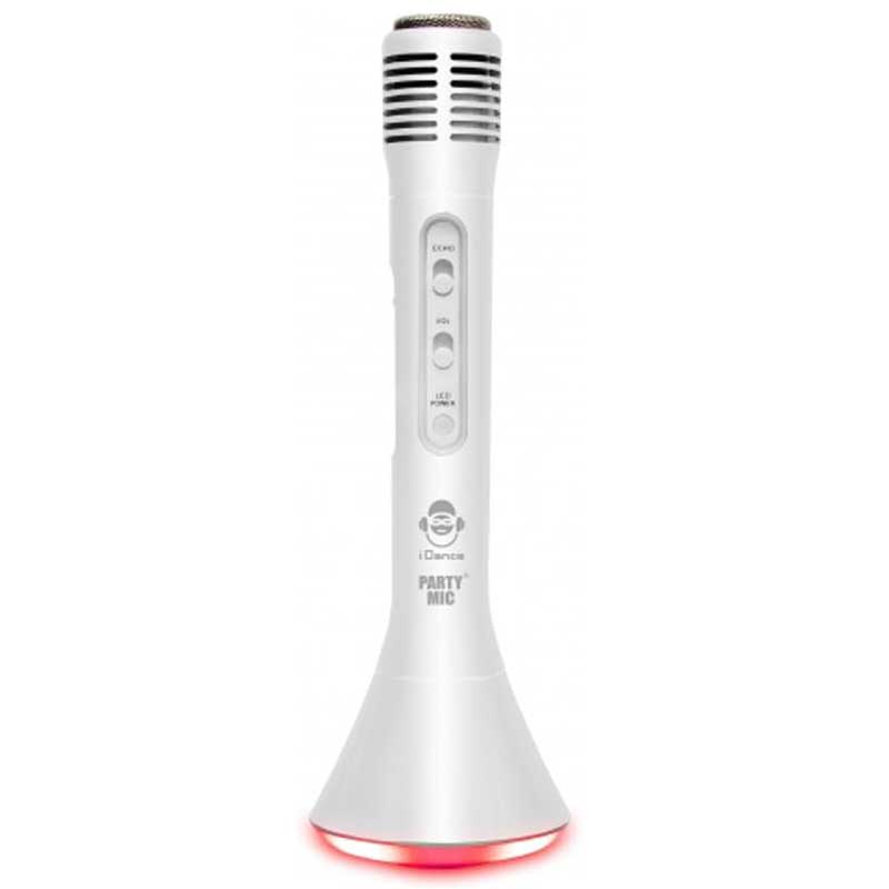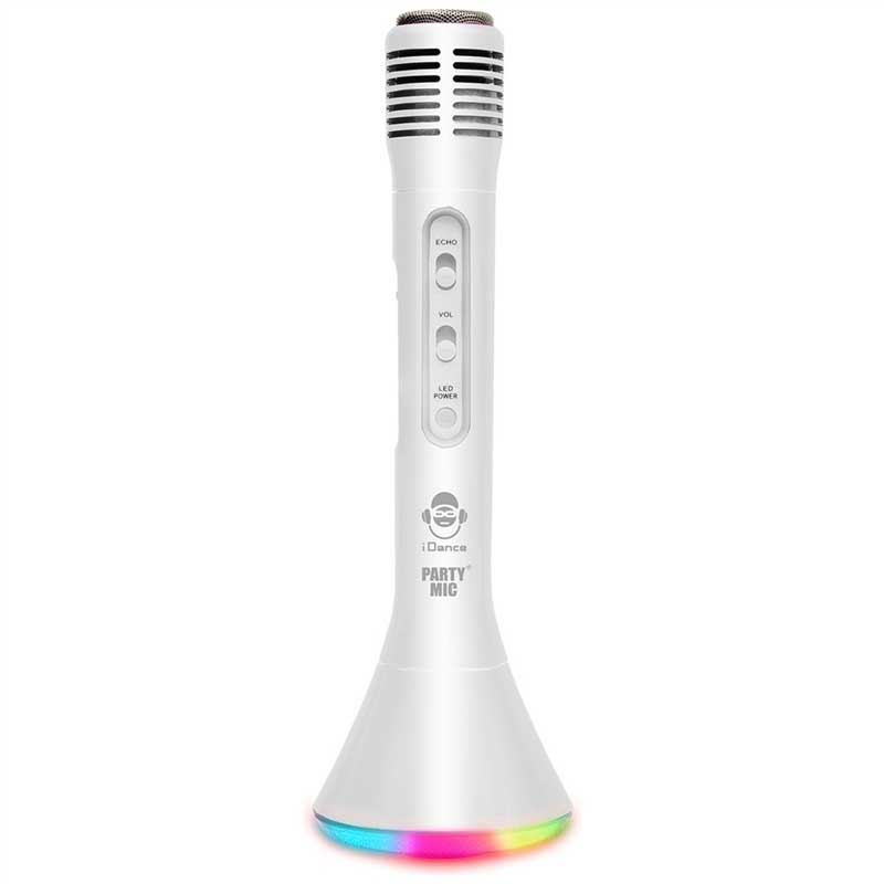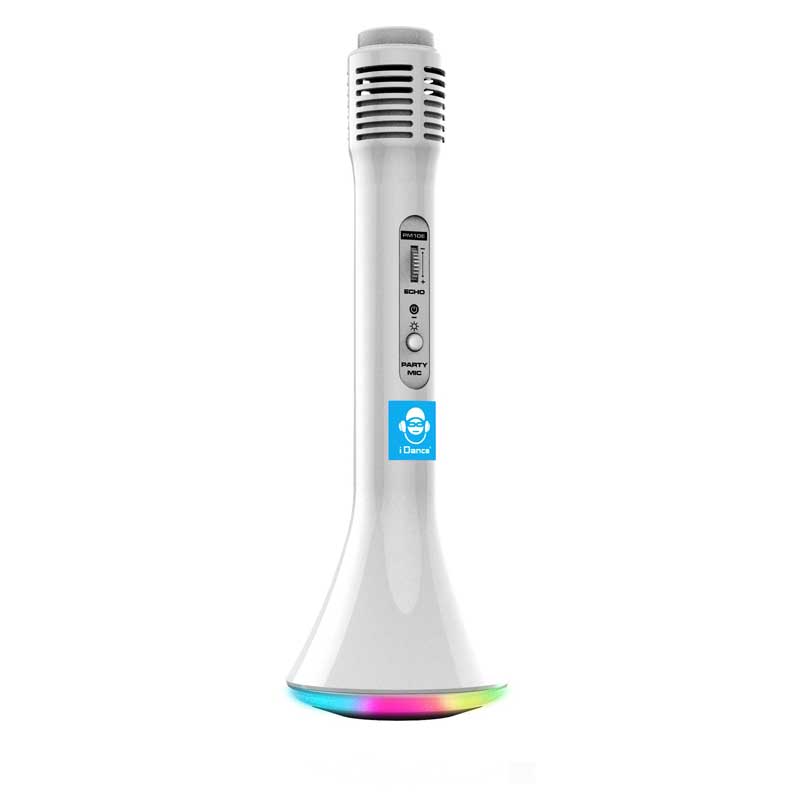 Създай своите незабравими музикални моменти с парти микрофон с бели LED светлини от iDance! Комплектът се състои от бял микрофон с вградена тонколона и LED светлини, USB кабел за лесно зареждане. Бъди най-добрият на караоке сцената с функциите за промяна на гласа и ехо ефектът. Създай настроение с цветните LED светлини и бъди в центъра на всяко партито. Свържи устройството към твоя телефон с Bluetooth безжична връзка. Компактен и лек, микрофонът комбинира чист, силен звук и добър бас. Зареждай го бързо чрез USB кабела и купонът ще бъде навсякъде с теб. Забавлявай се с караоке парти микрофона и открий най-добрата музика!