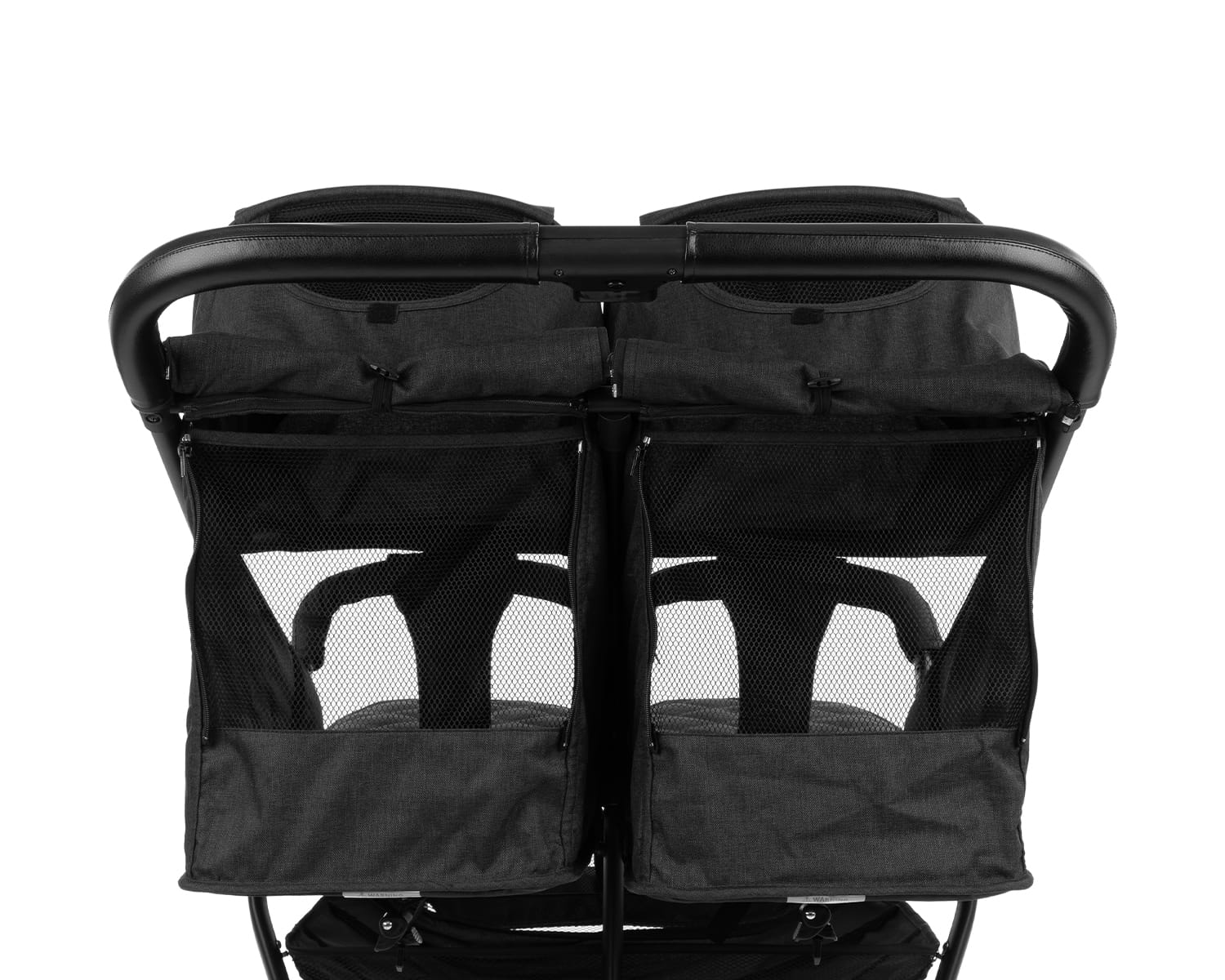 • Индивидуално регулируема опора на крачетата в 3 позиции.                                                                          Включени аксесоари: Покривала за крачетата на двете седалки, дъждобран.