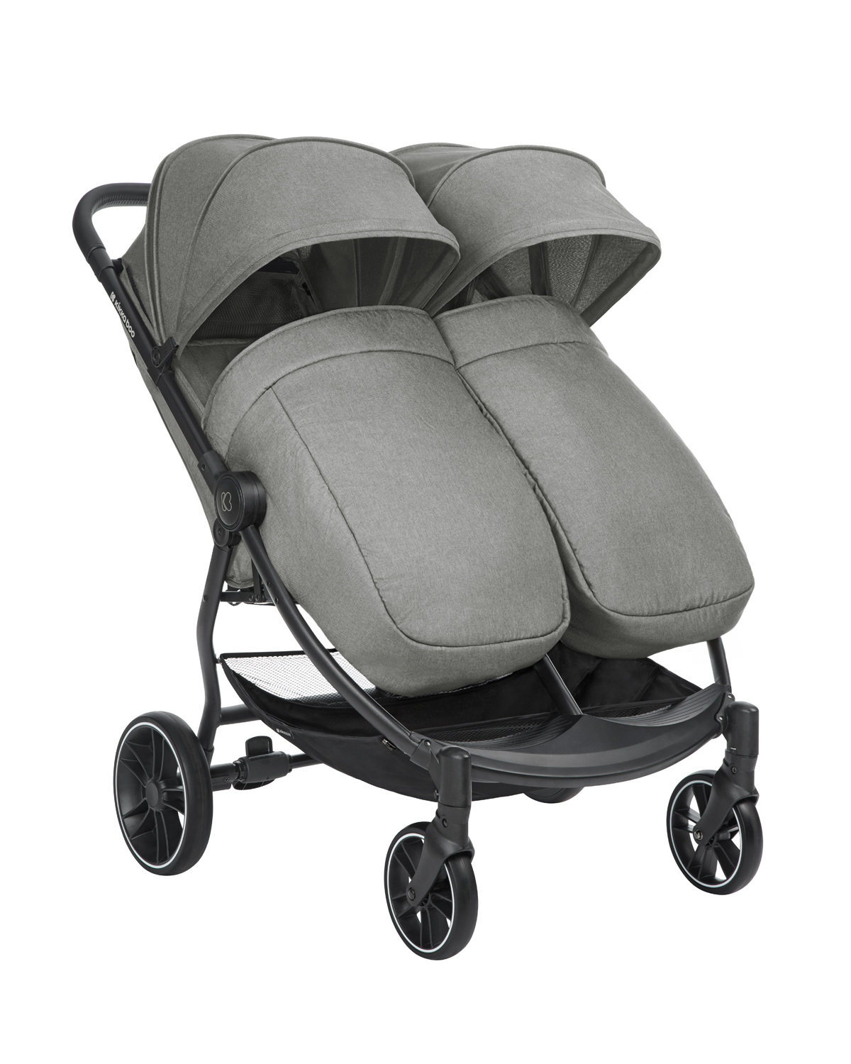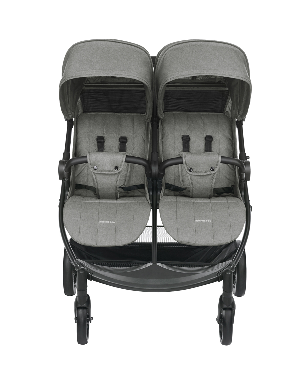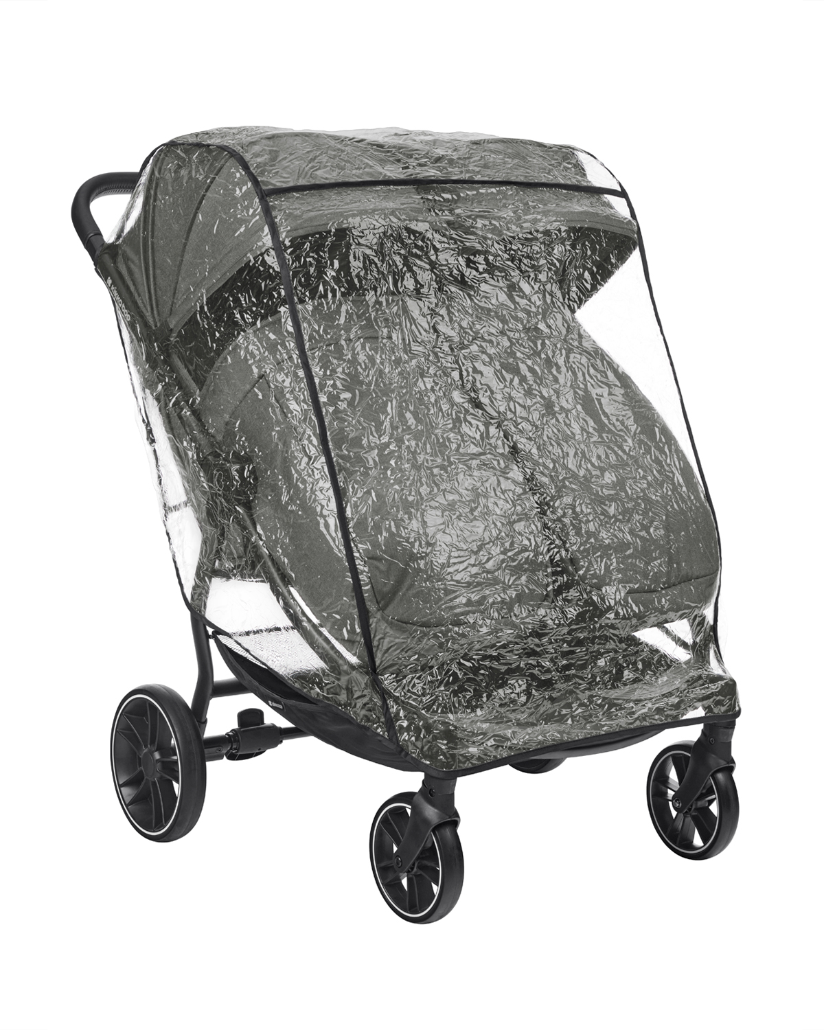 • Тествано в съответствие с EN 1888-2:2018+A1:2022 от SGS Standards Technical Services. Включени аксесоари: Покривала за крачетата на двете седалки, дъждобран.