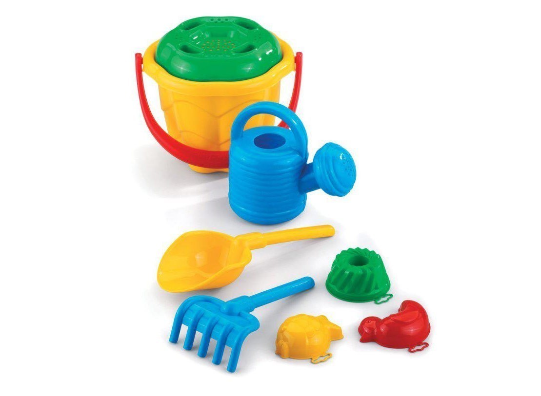 Детски комплект за игра на плажа от 7 части в различни цветове, с който малчуганите ви ще правят различни пясъчни фигурки и ще измислят много нови игри.