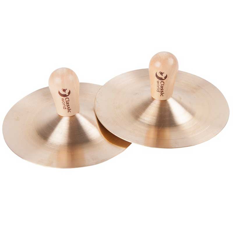 Детски комплект от кимвали – музикални инструменти, представляващи 2 диска, удрящи се един в друг. Те ще забавляват всяко дете и ще развиват музикалните му умения, чувството му за ритъм и координацията между ръцете и очите.