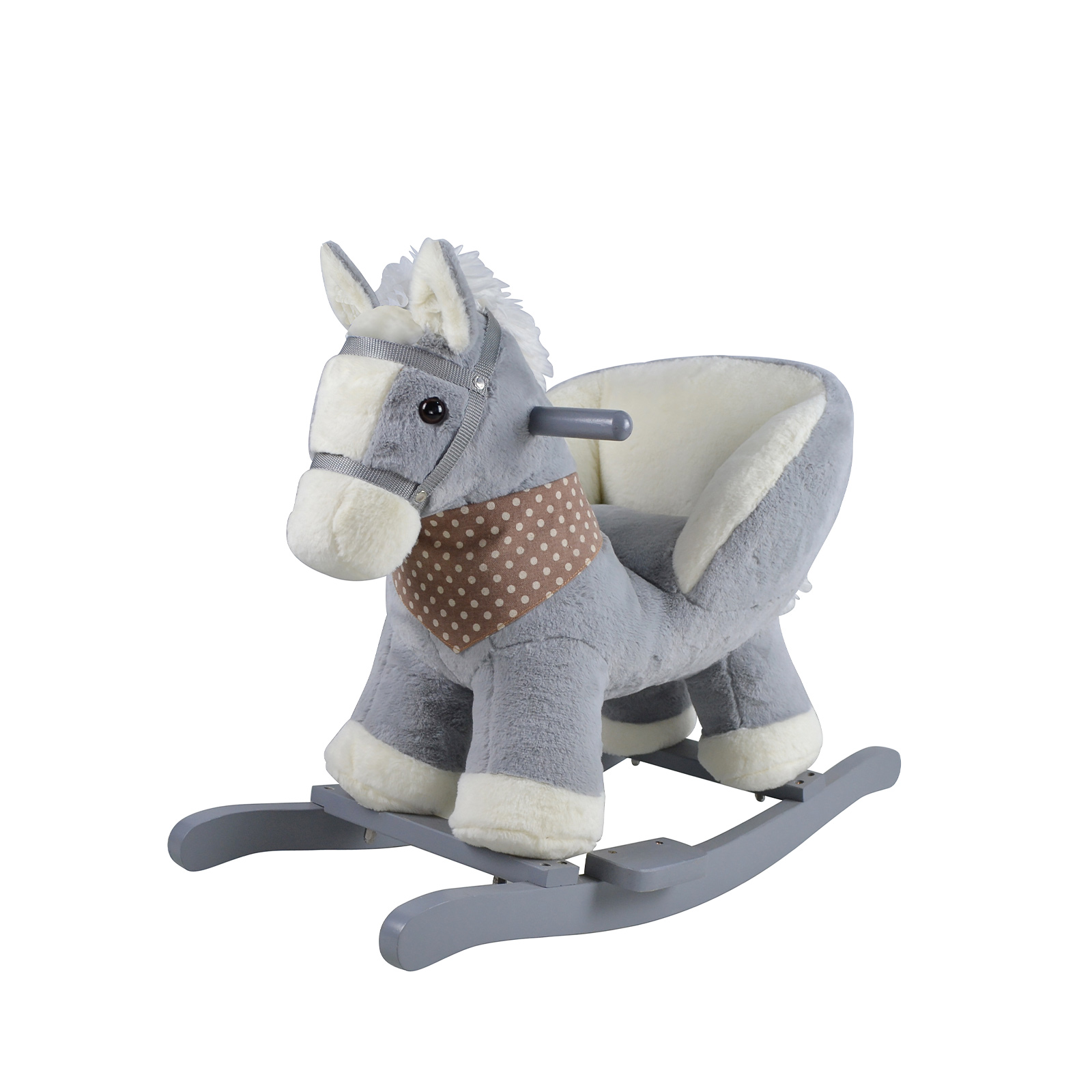 - С допълнителна функция за почивка – младият ездач може да си почине в стола или да се държи за удобната симпатична глава на кончето;
