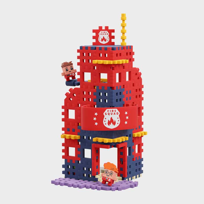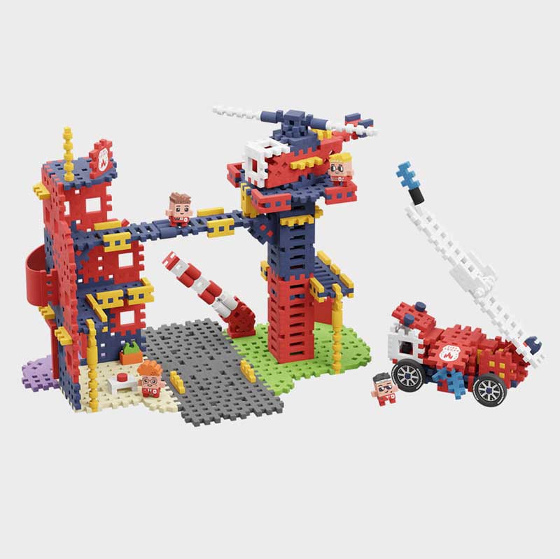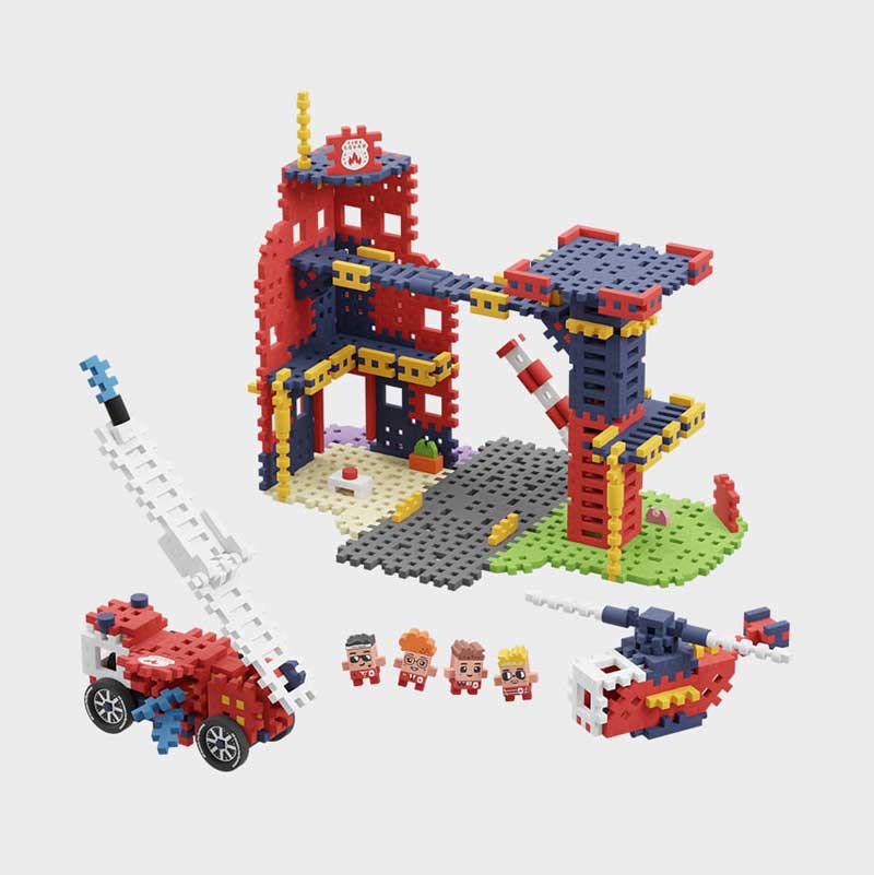 Комплектът впечатлява с детайли и реалистични сценарии. Децата сглобяват пожарна кула, специален гараж, пожарна кола и пълен набор от градски елементи, които подканват към сюжетни приключения. Фигурките правят историята още по-жива – смели пожарникари, които реагират на всяко повикване и овладяват ситуации с въображение и енергия. Основните предимства на конструктора са: