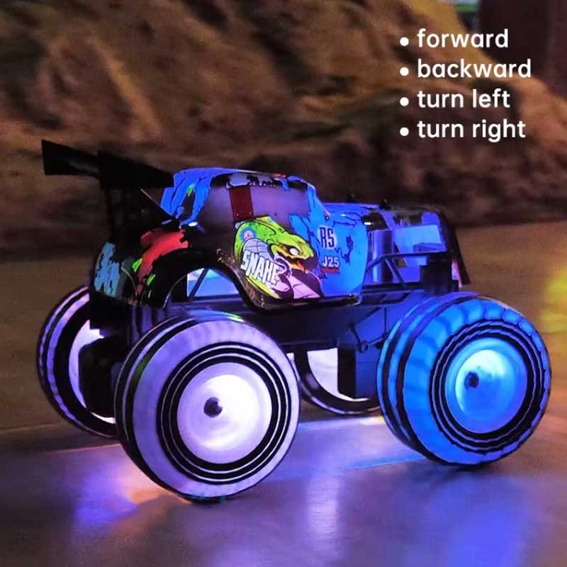 Мащабът на колата е 1:16 обещава впечатляващо присъствие, а агресивният ѝ дизайн и ярките LED светлини превръщат всяка игра в експлозивно шоу.