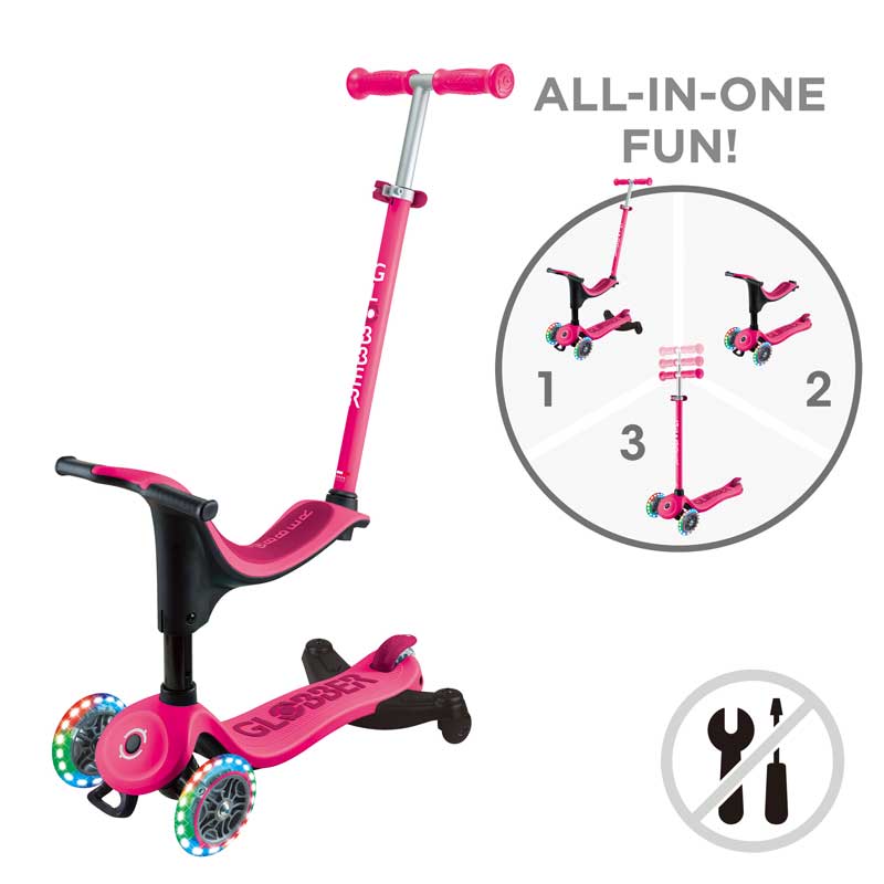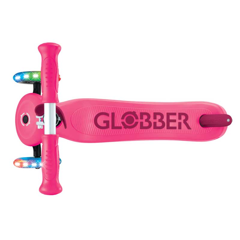 Най-новата серия на Globber – GO UP SPORTY LIGHTS 360, в розов цвят, ще изненада Вас и вашето дете с удобство, безопасност и изключителни подобрения в конструкцията!