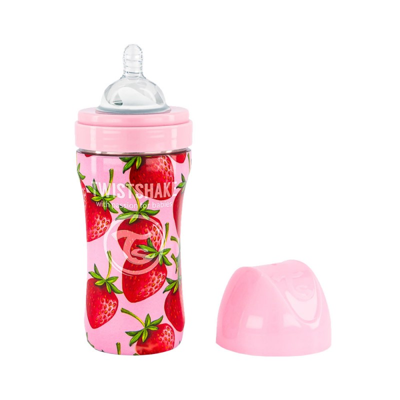 Бебешко шише Twistshake 330 мл от неръждаема стомана – розова ягода