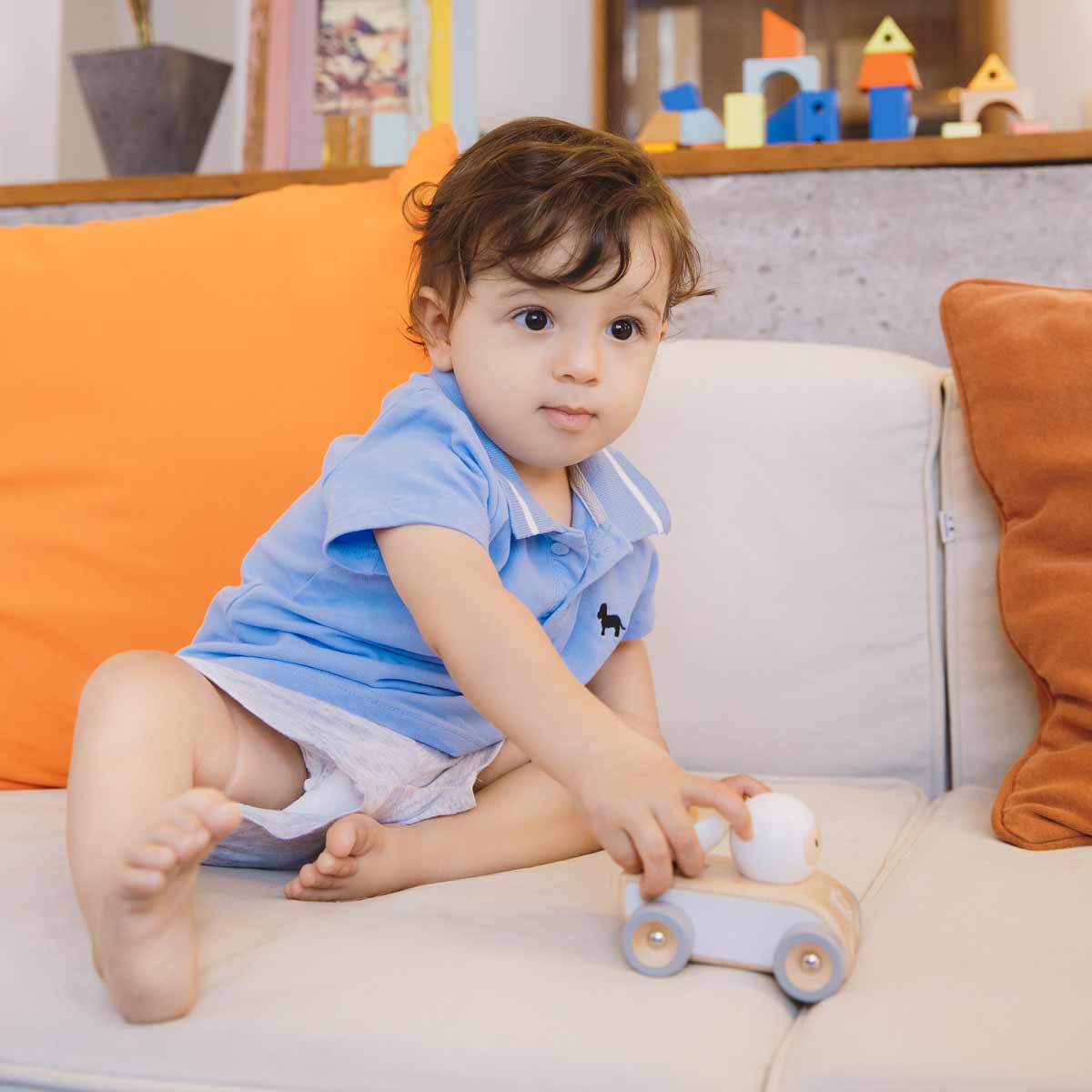 Изградена е така, че да може да се движи по различни повърхности, което я прави подходяща и за игра навън. Играчката е направена от висококачествен дървен материал и безвредни бои на водна основа.