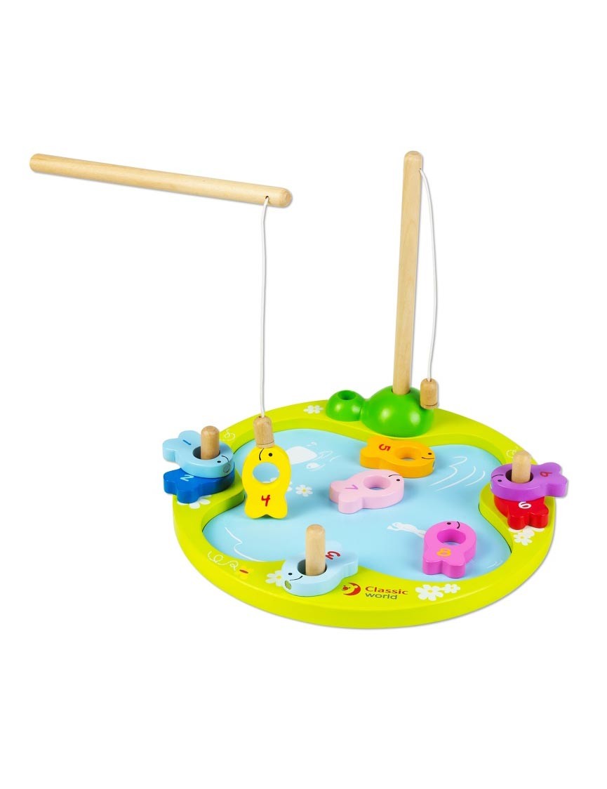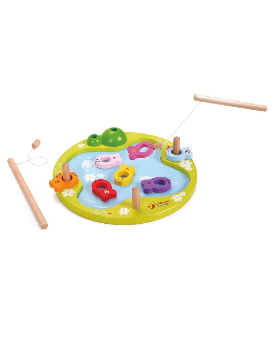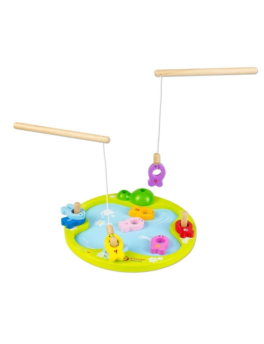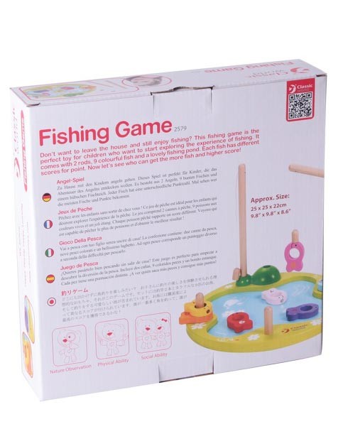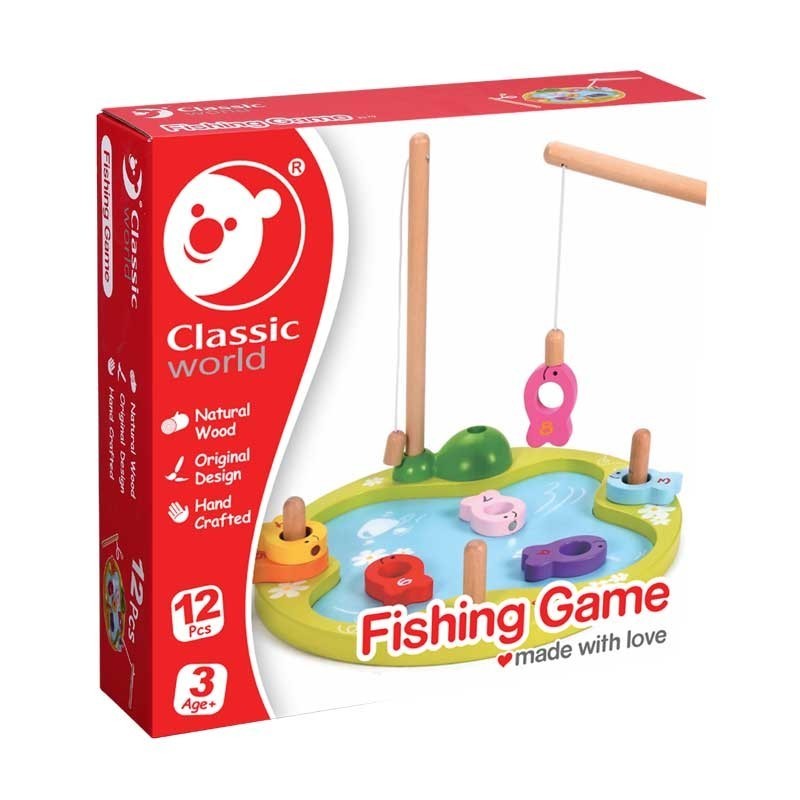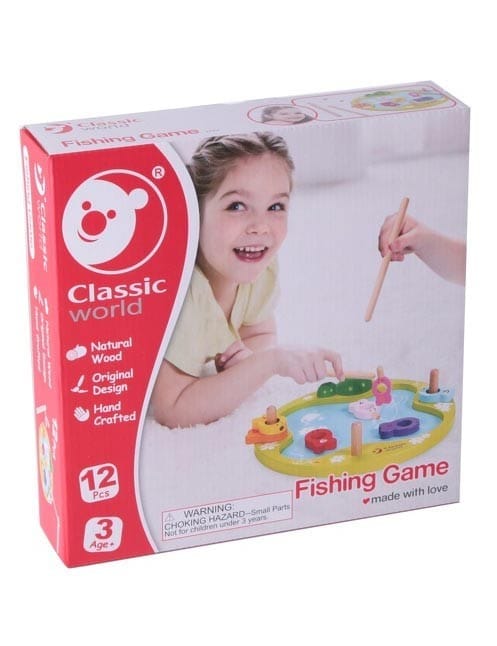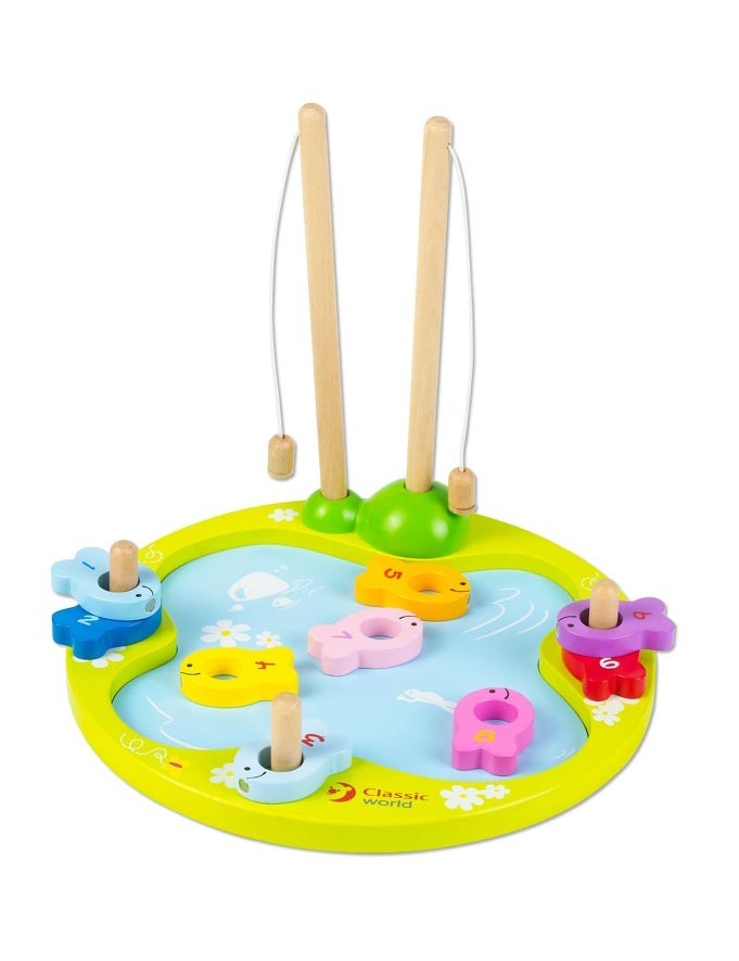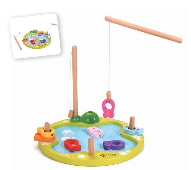 Дървена играчка за подобряване на координацията и движенията на децата – Магнитен риболов. Това е една забавна и любима игра за много малчугани. В нея могат да участват две деца. Играта се състои от дървен басейн, два броя въдици с магнит и девет дървени рибки. Който успее да налови повече риба, е победител.