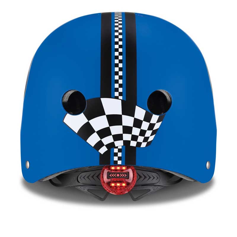Каската е устойчива и здрава, проектирана от ABS външна обвивка и абсорбираща подплата от EPS пяна. 7 милиметровите меки подплънки предотвратяват всички нежелани удари. Подложката на брадичката е с цел допълнителен комфорт, а регулируемите каишки създават условия каската да се адаптира според нуждите на детето. Моделът притежава 6 LED светлини в задната си част. Те се захранват с батерии и мигат в 3 различни режима – нормален, мигащ, бързо мигащ. Функциите на светодиодите допринасят за максимална видимост на пътя от другите участници в движението. Удобното прилягане на каската се дължи и на 11-те въздушни отвора за проветрение и комфорт.