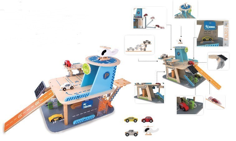 Екологичен дървен двуетажен гараж, снабден с хеликоптерна площадка. В комплекта са включени: