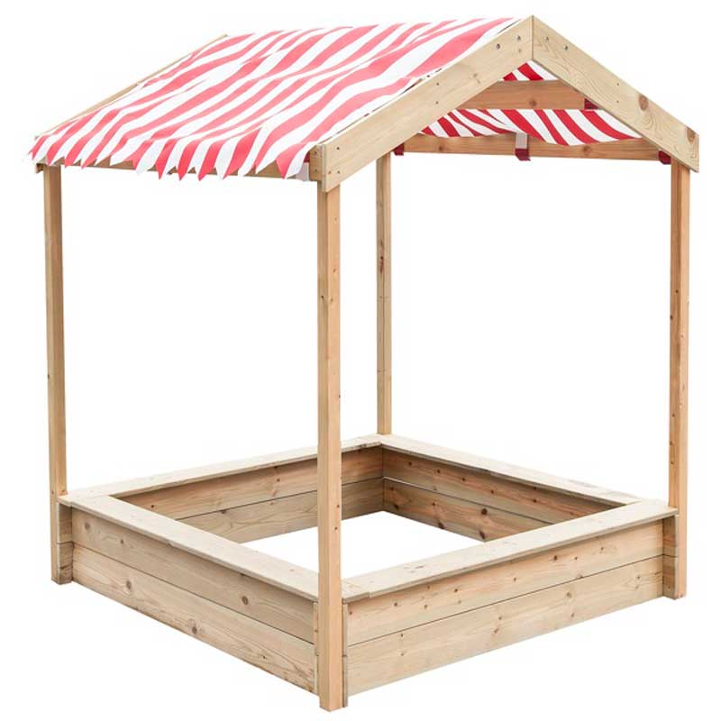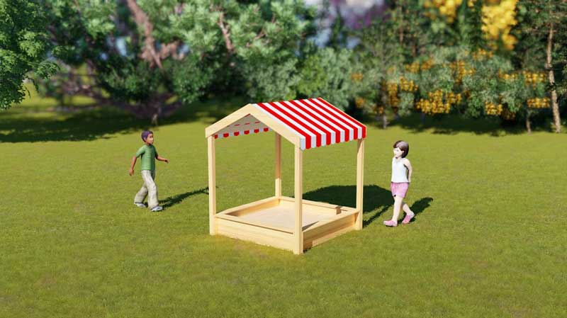 Детският дървен пясъчник с навес е идеалното място за децата да създават различни форми и фигури от пясък, да играят ролеви игри и да се забавляват на свеж въздух. Навесът предоставя сянка и защита от слънцето, като прави играта по-комфортна. Този пясъчник насърчава активната игра, социалната интеракция и творчеството на децата, като им предоставя незабравими моменти на забавление и учене.