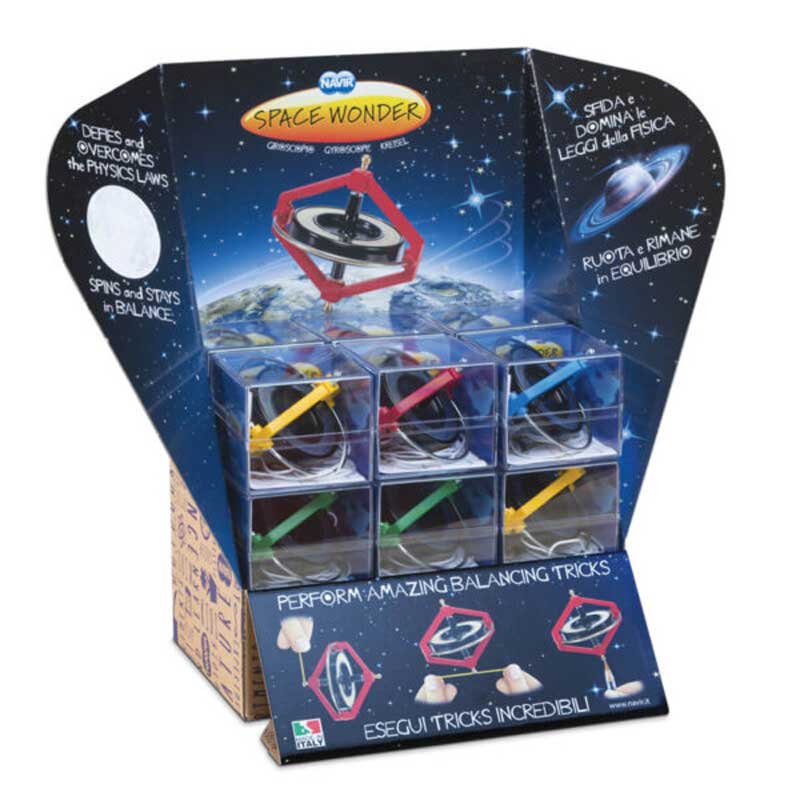 Детски жироскоп за изучаване на гравитацията с размери 7.5 x 7.5 x 6.5 см и различни цветове.