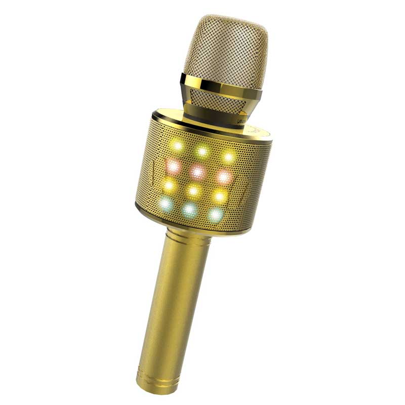Bluetooth детски караоке микрофон с LED светлини се предлага в цветовете: златен и сребърен.