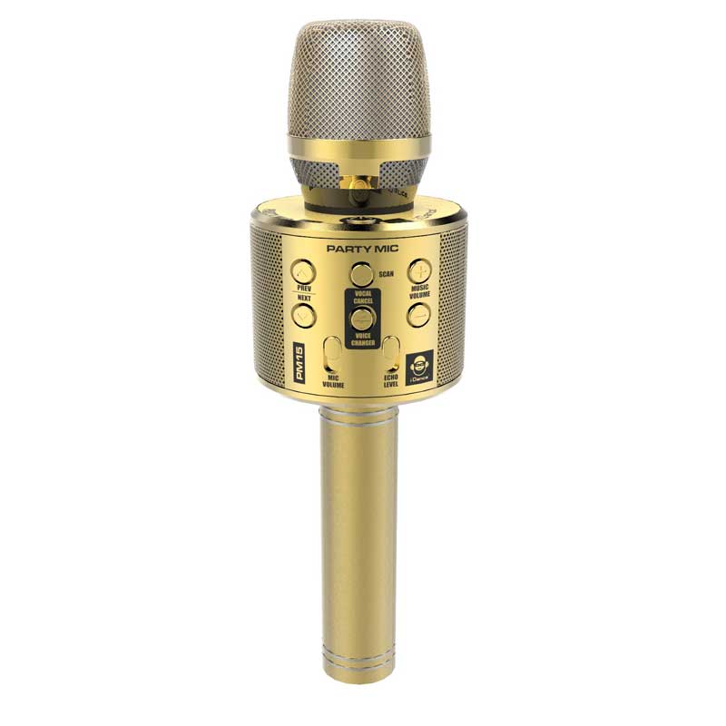 Стани караоке звездата на вечерта с детския златен микрофон на известния музикален бранд iDance! Комплектът се състои от микрофон с включена тонколона и USB кабел за бързо зареждане. Променяй гласа си по всяко време, като можеш да избиреш между режимите: мъж, жена, дете и робот. Наслади се на добър звук и висок бас, като контролираш силата на ехото с лекота. Включи своите МР3 файлове чрез USB слота или пък свържи безжично към твоя телефон или таблет. Бъди в центъра на купона с разноцветните LED светлини на всяко любимо караоке изпълнение. Забавлявай се и създавай незабравими спомени със златистия детски микрофон на iDance!