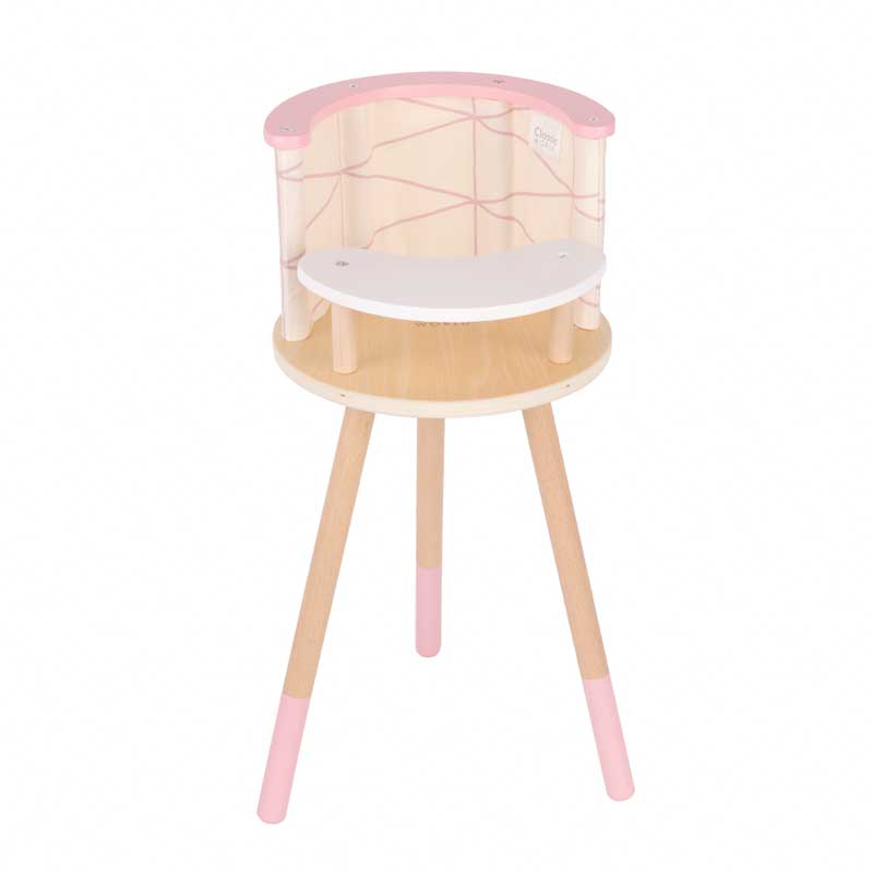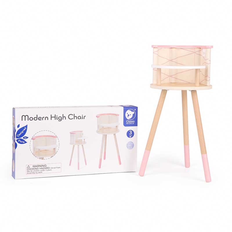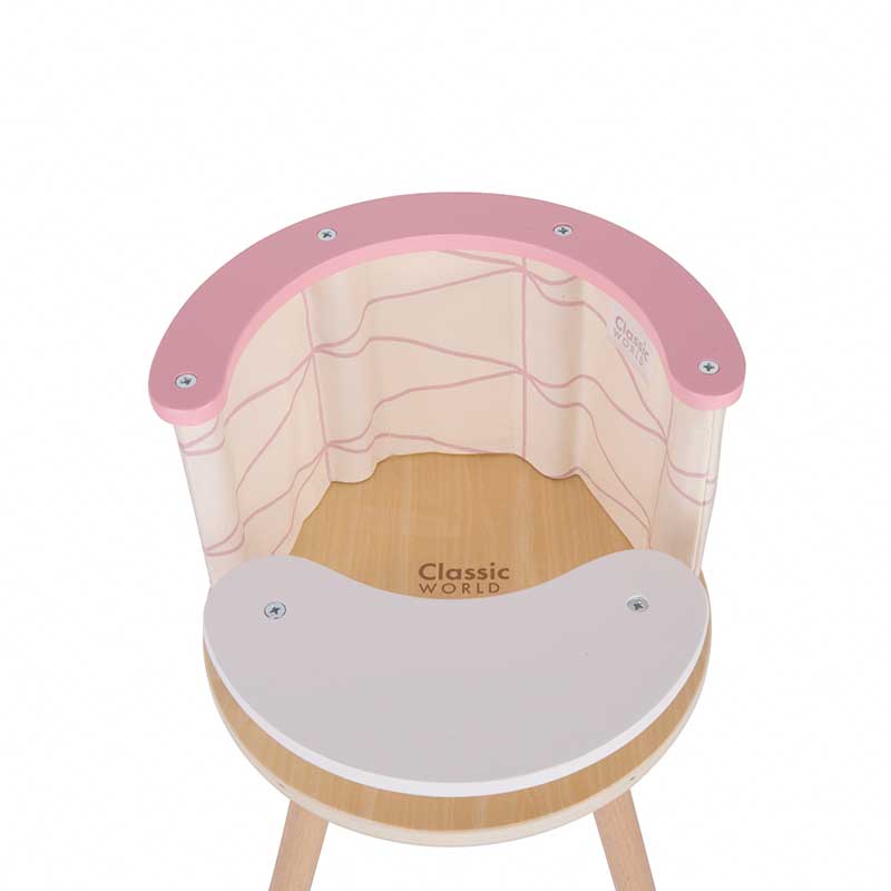 Детско дървено столче за хранене, с което всяко дете може може да разбере какво е да си родител, грижейки се за храненията на своята любима кукла. Ролевите игри насърчават въображението на децата и им позволяват да развиват различни таланти. Подарете им тези забавни мигове и ги оставете да играят в стаите им с часове.