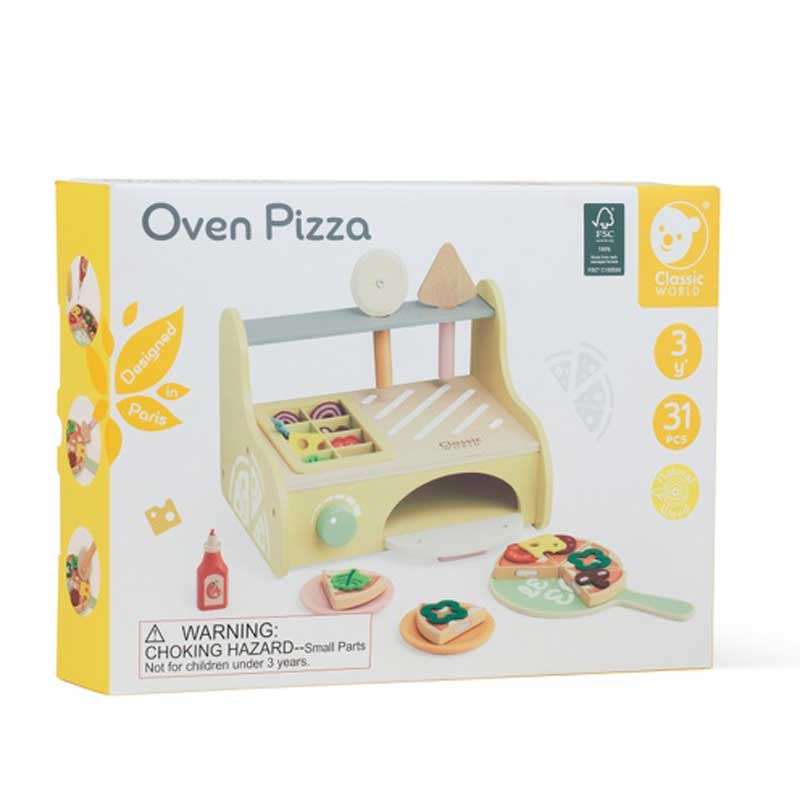 - Детска фурна за пици: децата могат да създават свои собствени пици и да ги „пекат“ в тази дървена фурна. Това насърчава тяхната творческа игра и предоставя възможност за учене чрез забавление.