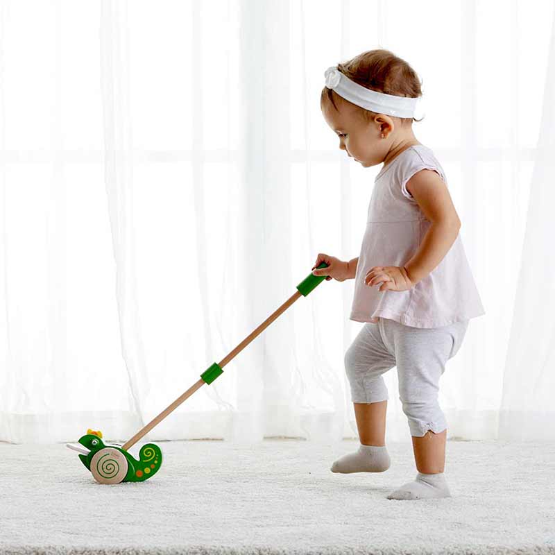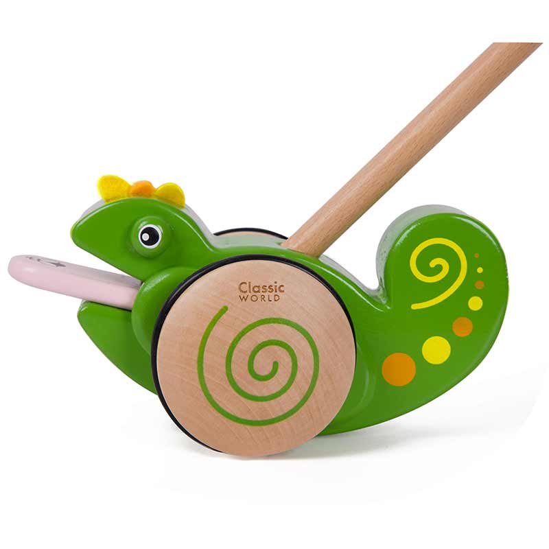 Децата могат да се учат да ходят, докато бутат любимата си играчка пред себе си. Докато се движи, хамелеонът изпъва езичето си и хваща мухата, издавайки шум, което кара детето да се смее и да се радва. Хамелеонът е една от най-продаваните играчки от Classic World.