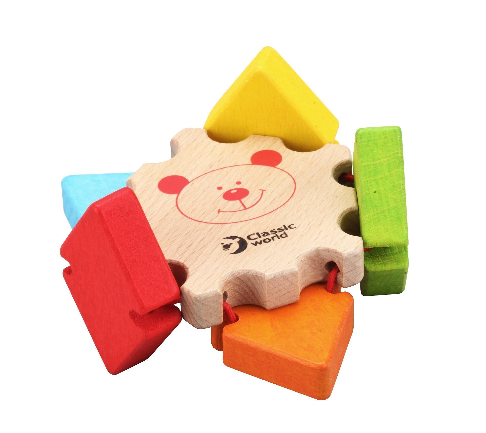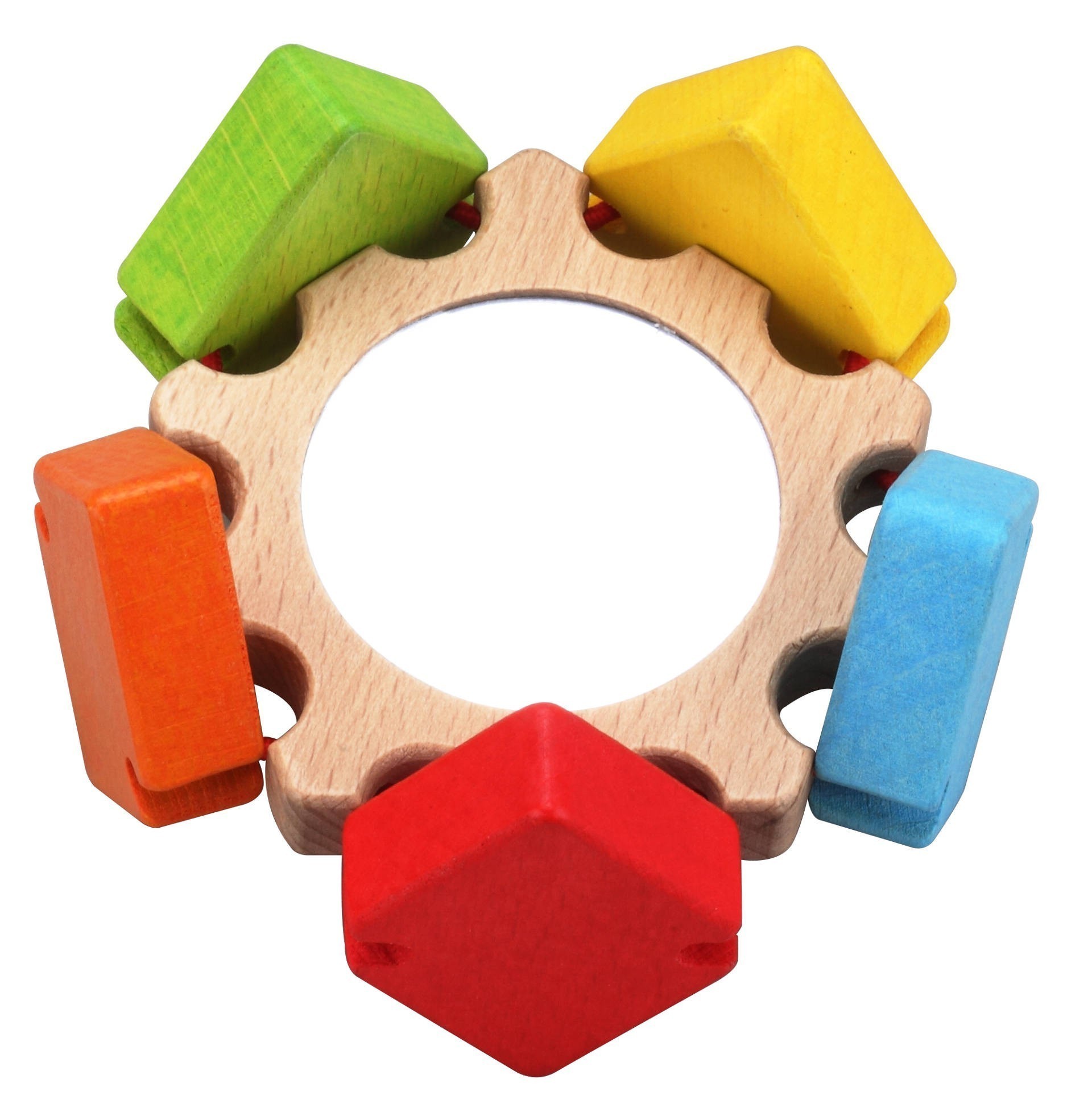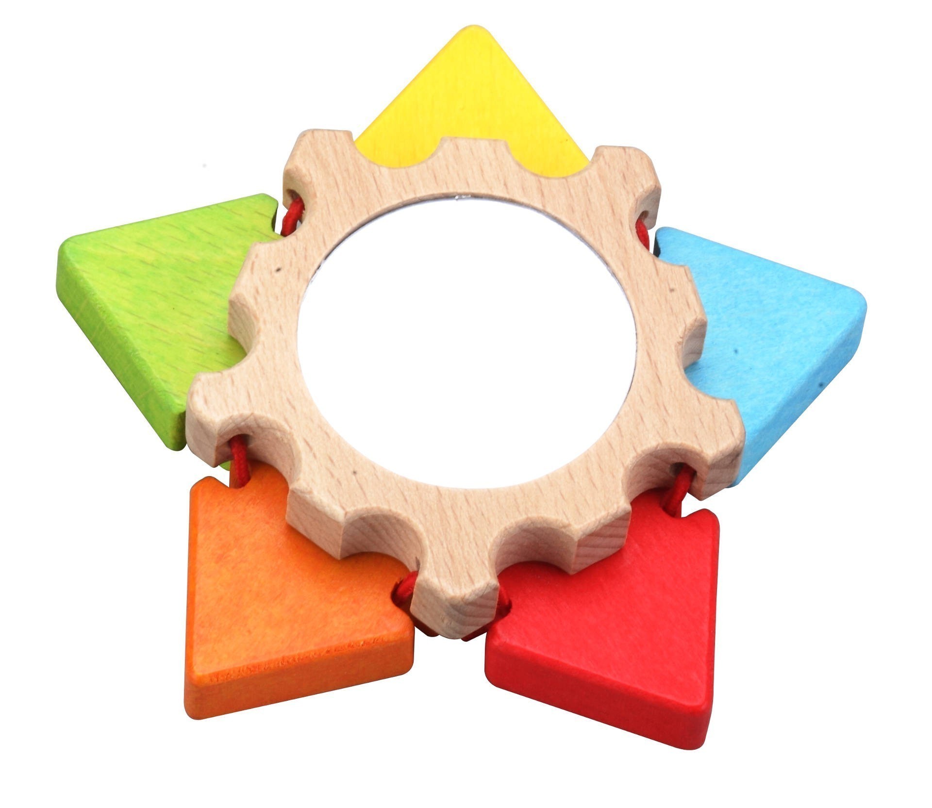 Малкото дървено цвете с огледалце е направено с цветни листенца. Бебето може да ги мести нагоре и надолу, при което те издават приятен „клик-клик“ звук.