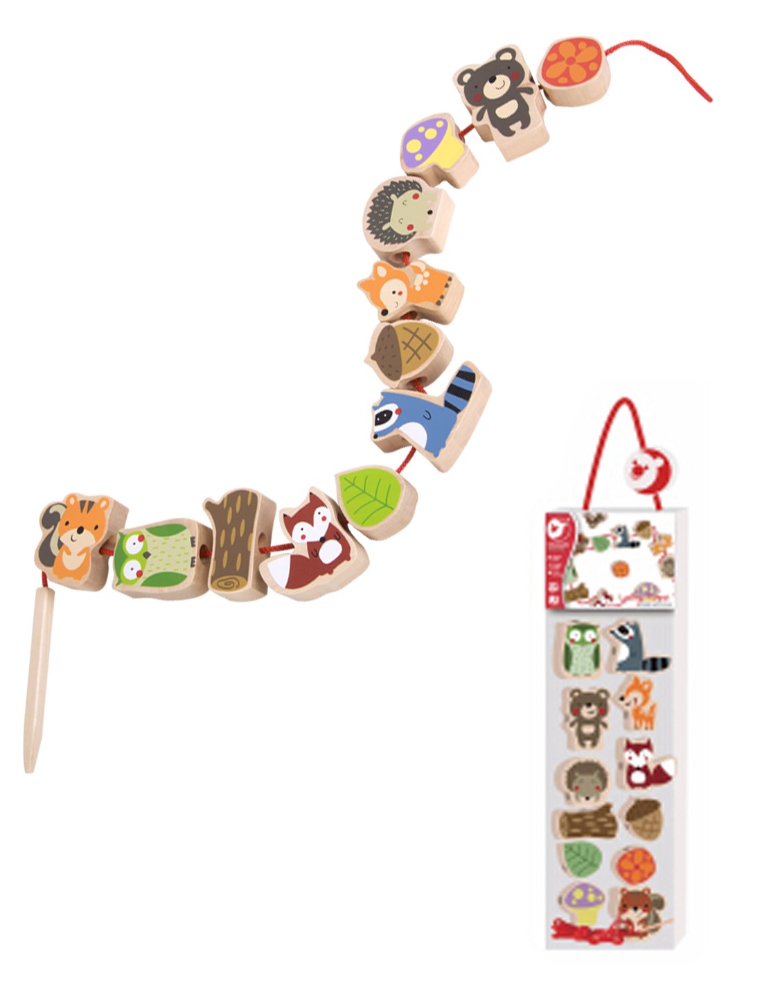 Подреди, нанижи и научи различните видове горски животни, докато просто си играеш.