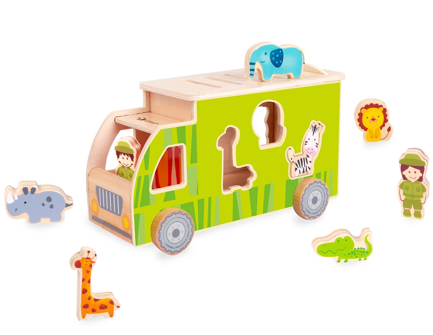 Всички деца обичат да играят и да се забавляват, именно тогава те научават най-много, и то по лесен и бърз начин. Затова ви предлагаме интерактивното дървено камионче – сортер, което се дърпа и в него има много разнообразни фигурки на различни животни като – слон, крокодил, зебра, хипопотам, жираф, лъв и разбира се, шофьора на камиончето.