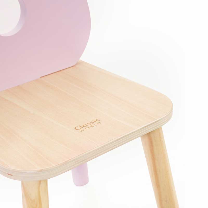 Дървеното столче се предлага в още две разновидности – лале и лимон и може да се комбинира с дървена маса на Classic World.