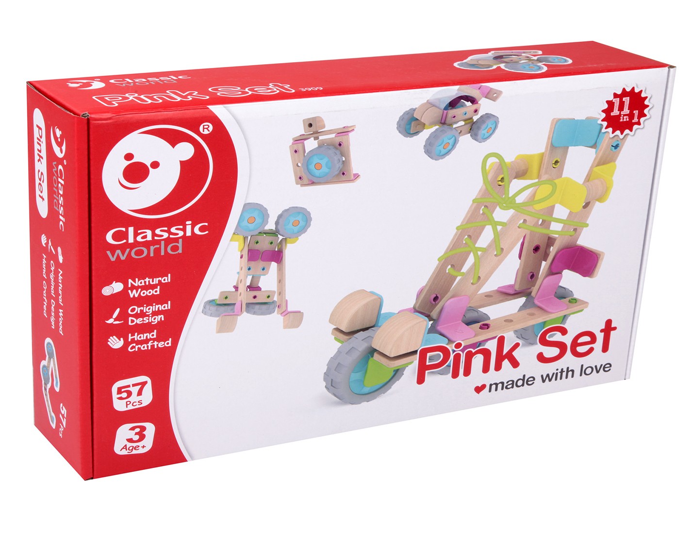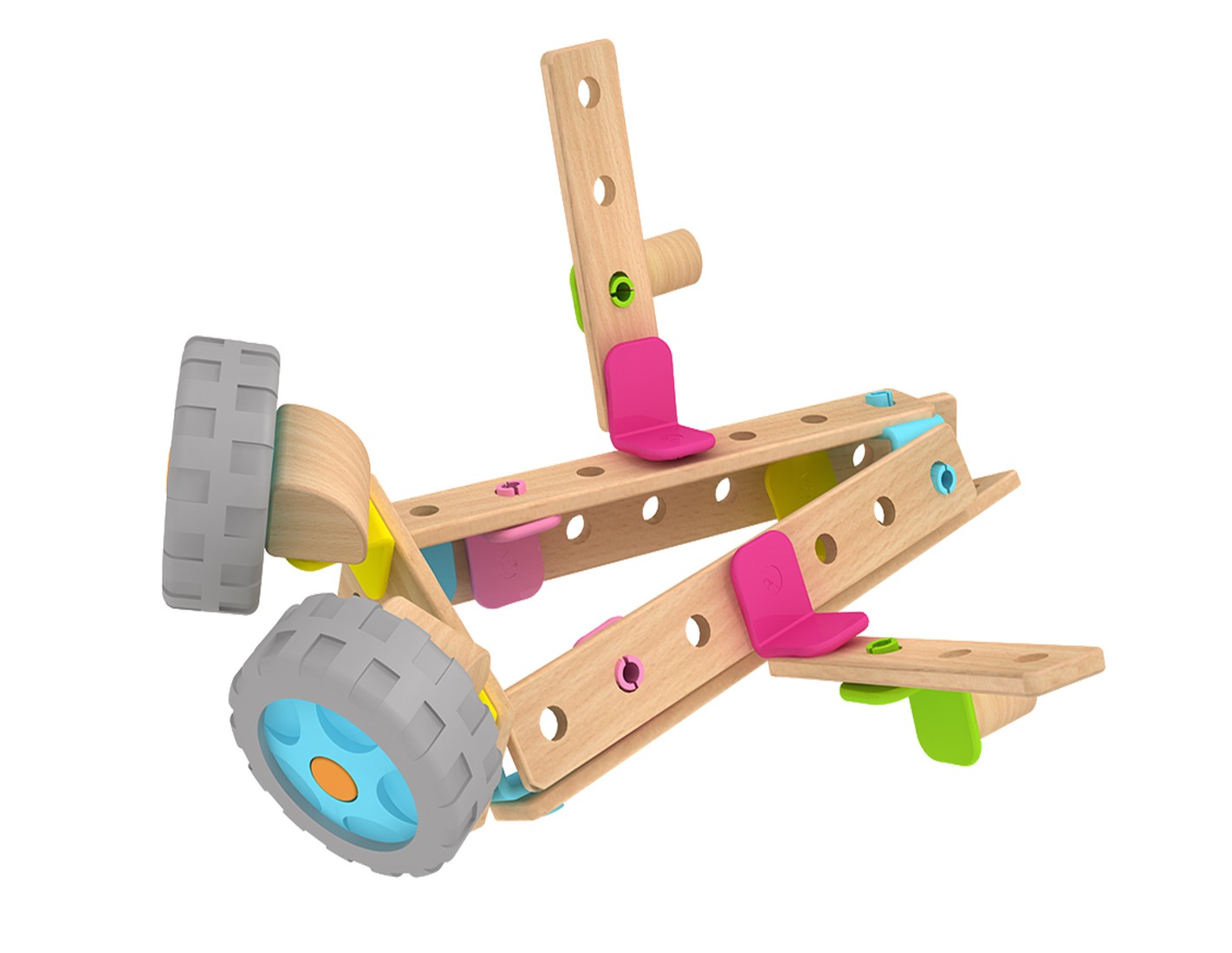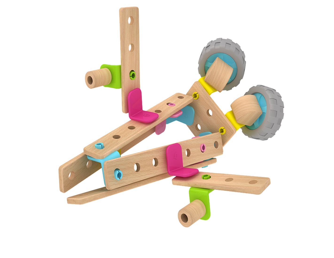 Този дървен конструктор е една чудесна играчка за всяко малко дете. Тя позволява детето да развихри своята фантазия и да сглоби разнообразни фигури с различните части, без да използва никакви инструменти. Към комплекта има и книжка с примерни фигурки за сглобяване, но сме сигурни, че вашето дете ще измисли безброй други начини да сглоби частите. Крайният резултат може да е робот, мотоциклет, състезателна кола, самолет и т.н. Може да се сглоби дори и по-голям робот с части от други конструктори от същата серия.
