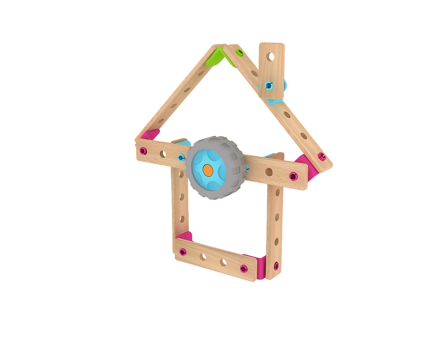 Дървен конструктор за деца на възраст над 3 години, съдържащ 57 части.