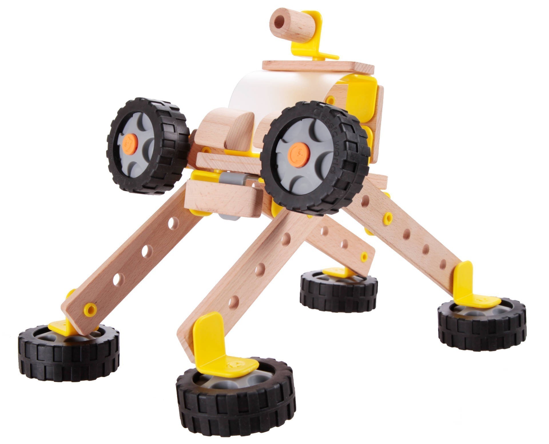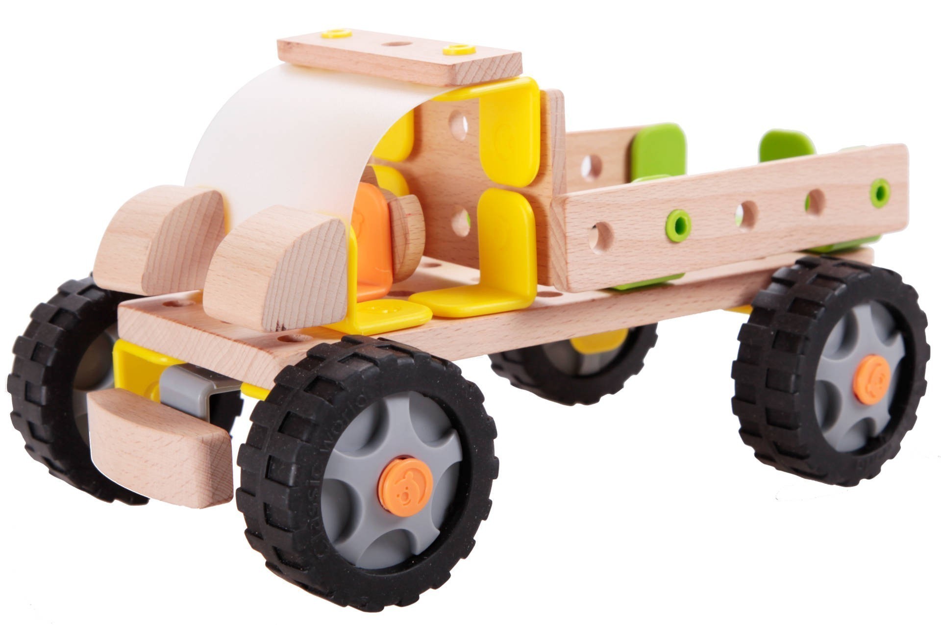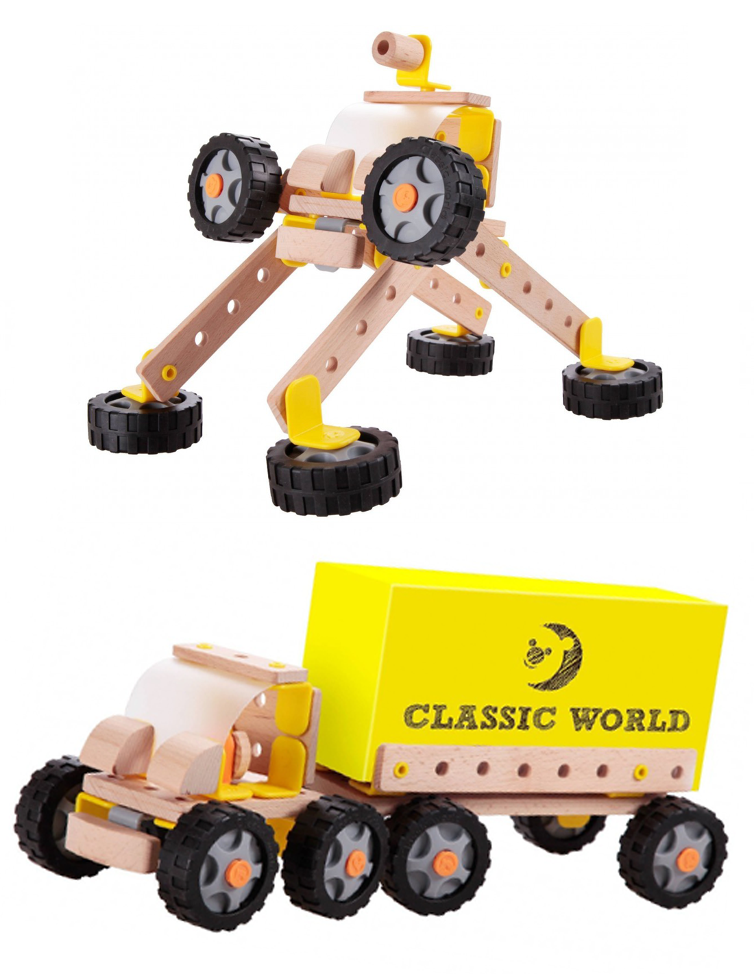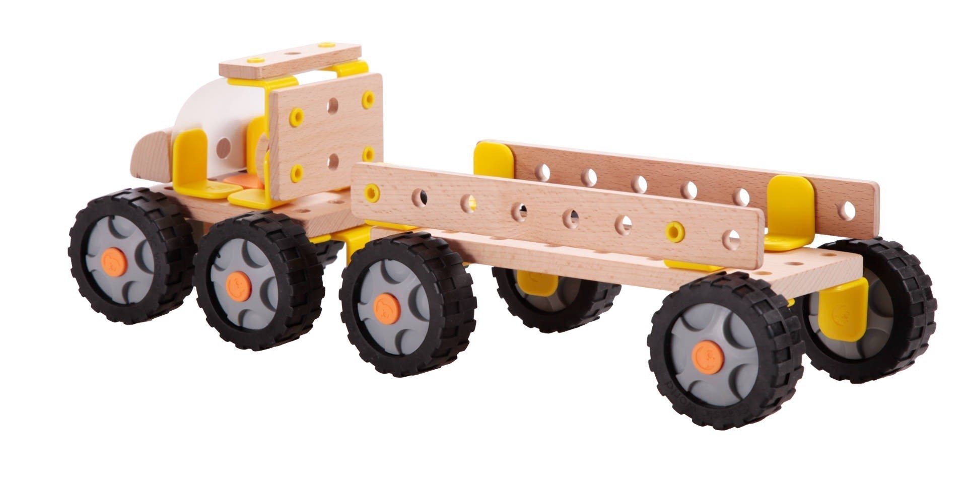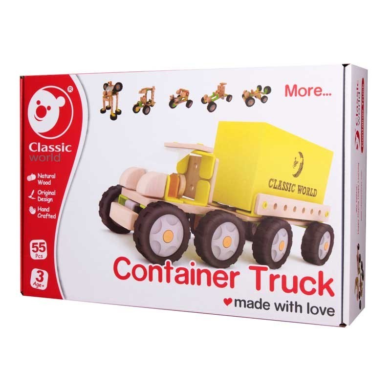 Този конструктор е истинско и забавно удоволствие за малките любители на този вид играчки. Съдържа дървени и пластмасови елементи, с които детето да конструира истински контейнеровоз или само да измисли някакъв друг модел превозно средство.
