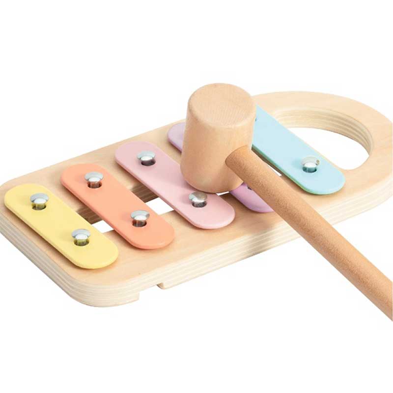 При удряне на топките с дървеното чукче те минават през отворите и падат върху ксилофона, като издават уникални звуци. В допълнение, ксилофонът може да се отдели и да се използва само с чукчето за издаване на по-добри музикални звуци. Това насърчава интереса към музиката и ритъма и развива музикалните умения на детето.