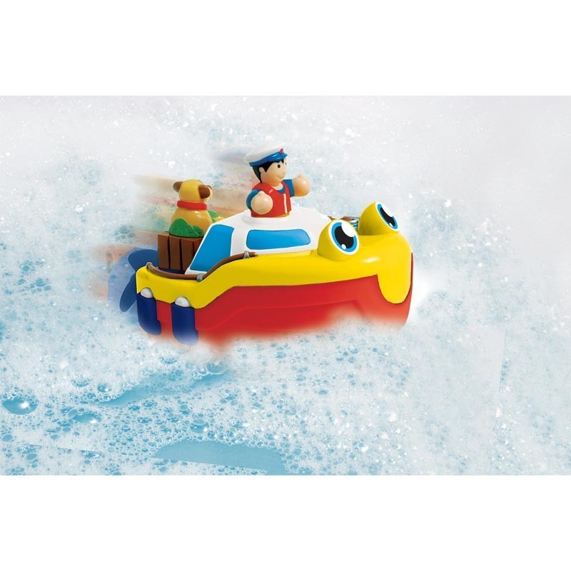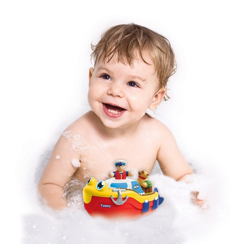 Наблюдавайте Катера на Томи как препуска по водата по време на баня. Поставете играчката върху повърхността на водата и наблюдавайте как се носи точно като истинска лодка. Преди да поставите лодката във водата, завъртете капитана около оста му и след това ще можете да наблюдавате как мощното витло на Томи прекосява водата. Тази интерактивна играчка за баня ще направи времето, прекарано в банята, още по-интересно за малчуганите, а за вас скъпи родители – по-лесно. Интерактивната играчка Катера на Томи е продукт на компанията WOW Toys и е приспособена не само за игра по време на баня, а също така и извън нея. Благодарение на колелата ѝ може да се използва за игра и на пода.