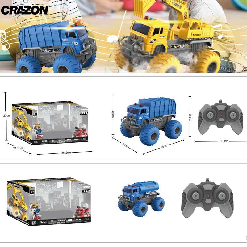 Твоето строително приключение започва с камиона от Crazon! Многофункционален – с движение в 4-те основни посоки, със сигнализиращи светлини и фарове, ти ще можеш да строиш дори и вечер. Забавлявай се с вградените мелодии на всеки строеж и контролирай товарния автомобил с дистанционното, което се управлява с лекота. Различните терени не могат да му се опрат – кал, камъни или пясък, той преминава през всяка неравност. Заслуга за това имат специалните му гуми, изработени от материя против плъзгане и износване, създаваща добро сцепление с настилката. Дизайнът на модела е изключително реалистичен, като съдържа всички елементи на истинския камион. Каросерията в задната му част е здрава и стабилна. Камионът е мощен и позволява игра до цели 30 минути , а обхвата на радио сигнала достига 25 м. Ако вашето дете се вълнува от архитектура и строителство, това е точният подарък за него!