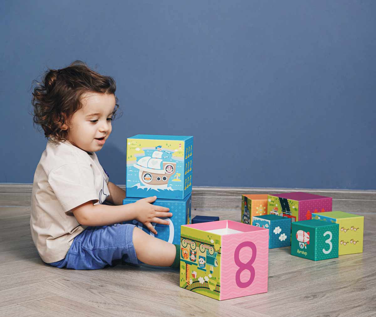 • Кубчетата са изрисувани с автобуси, влакчета, камиони, корабчета и всякакви транспортни средства.