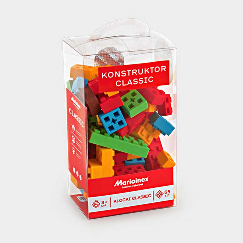 Класическата им форма е изработена от безопасен, мек и гъвкав материал, което ги прави необичайно приятни, безопасни и тихи за игра. Блокове са здрави и със своя прост дизайн позволяват на децата да изграждат сигурни и трайни структури и разнообразни и триизмерни форми. Класическият конструктор предоставя широка гама от възможности за изграждане и развитие на креативността и въображението на вашето дете.