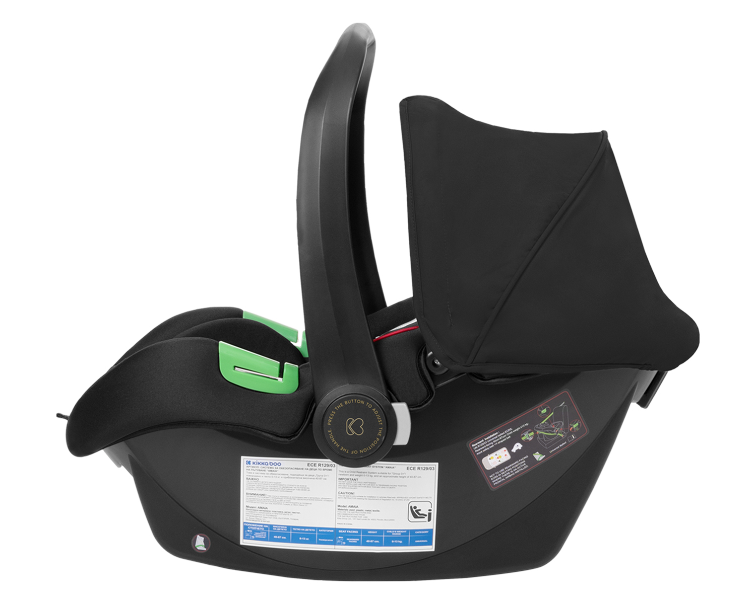 • Тествано в съответствие с Регламент за изпитване ECE R129/03 от TÜV SÜD.                                                                                           Включени аксесоари: Покривало за крачета на седалката, адаптори, чанта, поставка за чаша, комарник.