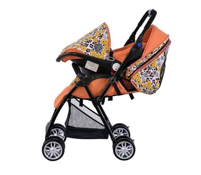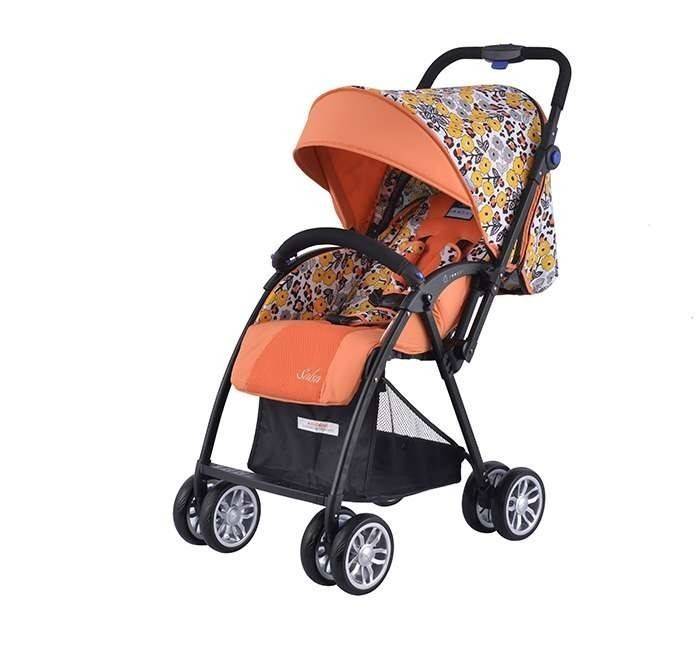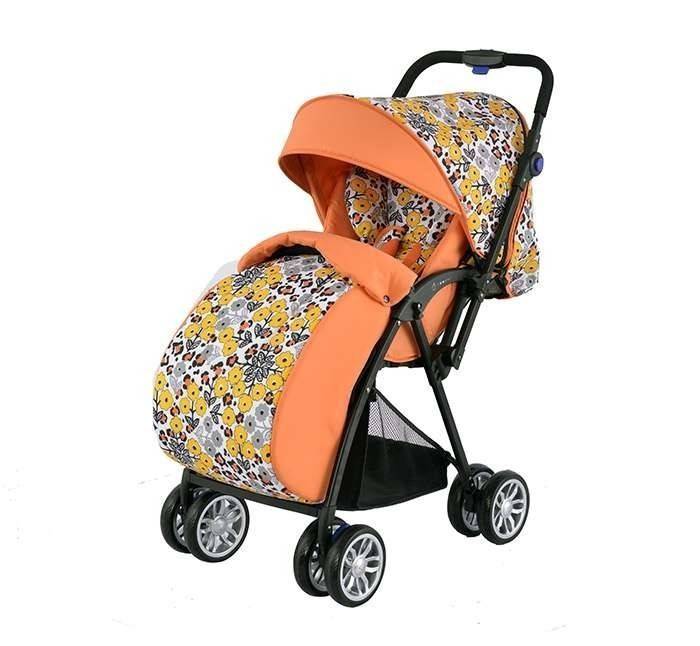 С прекрасното си съчетание от оранжев цвят с пролетни цветя и тегло от 5.8 кг., тази детска количка грабва вниманието веднага.