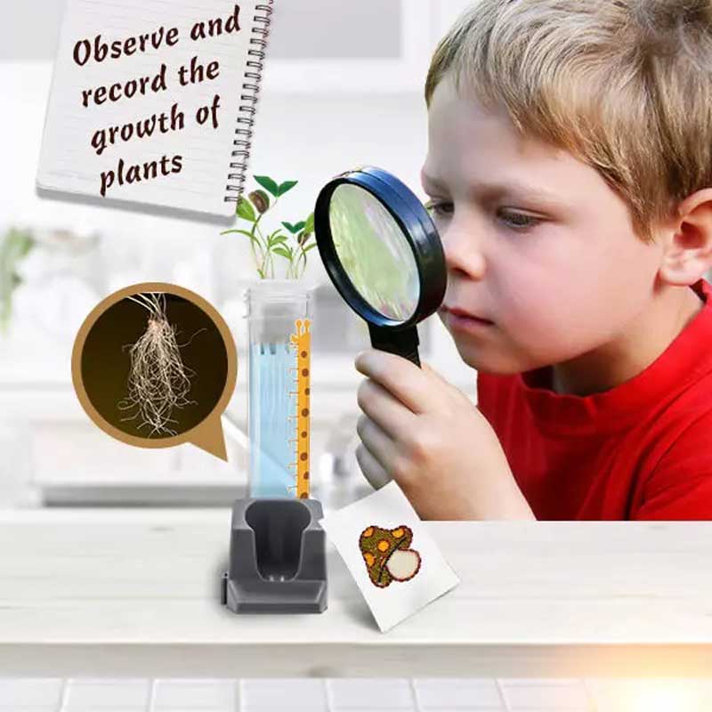 Разберете как растат и живеят растенията, при какви температури, от какво се нуждаят и т.н. Комплектът за отглеждане на растения позволява на малките градинари да проследят цялостния процес по растеж и развитие на растенията, като ги запознава с магията на природата. Играта съдържа всички необходими аксесоари, позволяващи на децата ви да се превърнат в опитни ботаници. Така те ще проверят своите научни умения, ще развихрят въображението си и ще обогатят знанията си. Трябва само да следват ръководството за употреба в комплекта!