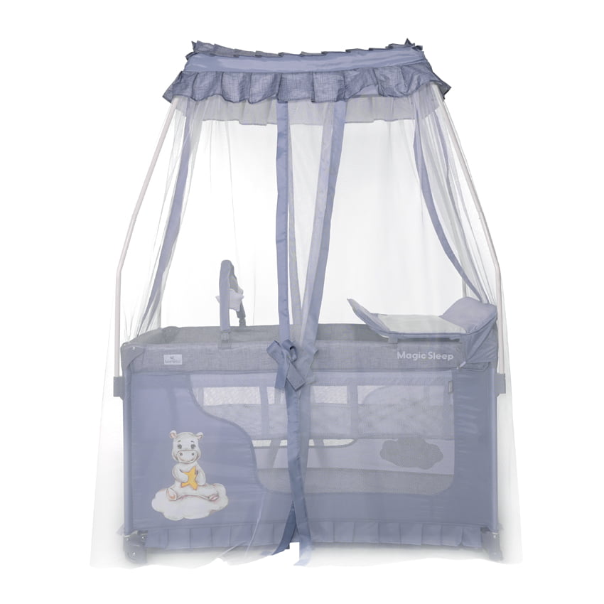 Създаден, за да донесе повече уют, сигурност и лекота в ежедневието на семейството. Комбинацията от за спане и игра, гриф с играчки, колелa за лесно придвижване, подложка за повиване, страничен отвор с цип, сгъва се до компактни размери осигурява удобство, стабилност и усещане за спокойствие при всяко използване. Функционалността е съчетана с комфорт, за да може детето да се чувства добре, а родителите – по-спокойни. Всеки елемент е подбран така, че да улесни грижата за детето и да намали напрежението в забързаното ежедневие. Идеален е за тези, които искат да съчетаят практичност, комфорт и грижа.