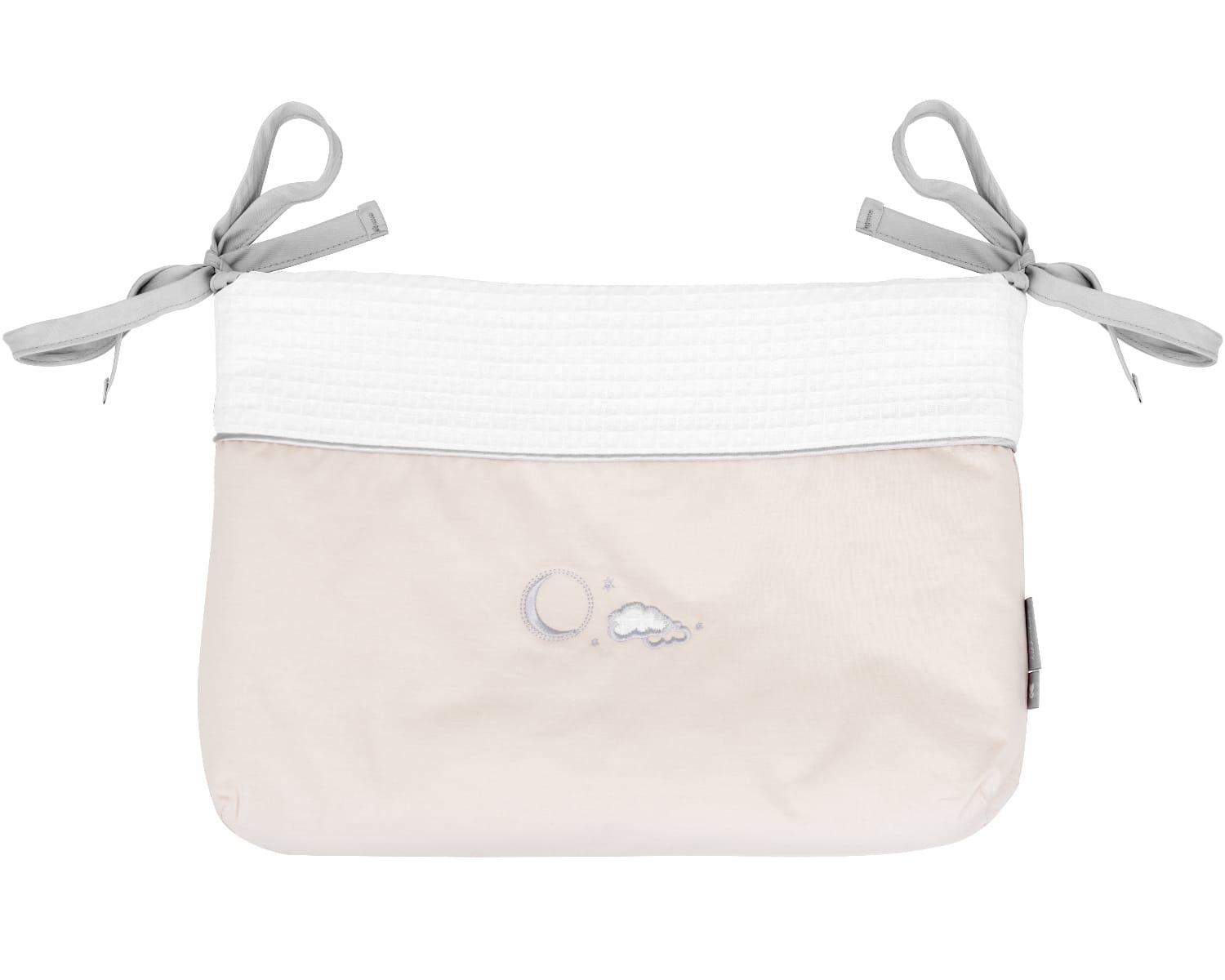 Този продукт е създаден с внимание към нуждите на най-малките и спокойствието на родителите. Благодарение на стилен дизайн със закачливи десени и бродерия, • Луксозен кош за памперси с връзки, изработен от висококачествени памучни материи, осигурява лесен достъп до памперси, кърпички и други аксесоари от първа необходимост, размер: 33х23х8 см, опция за прикрепяне към бебешката кошара с връзки, пълнеж: 100% полиестер продуктът се вписва лесно в динамичното ежедневие на родителите. Всеки елемент е подбран така, че да улесни грижата за детето и да намали напрежението в забързаното ежедневие. Този продукт е подходящ за моменти на игра, разходки и ежедневни занимания. Идеален е за тези, които искат да съчетаят практичност, комфорт и грижа.