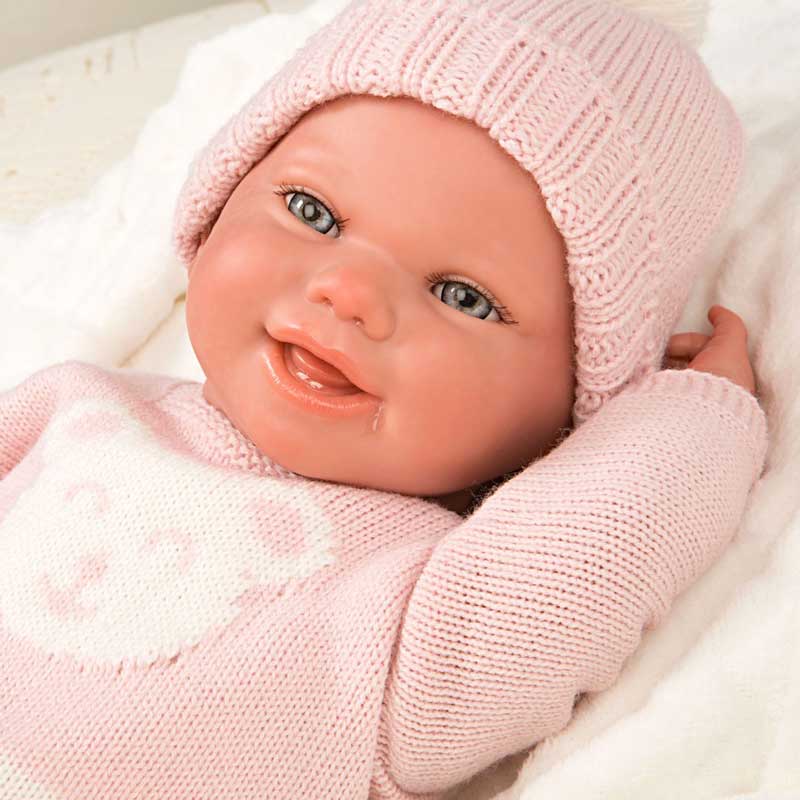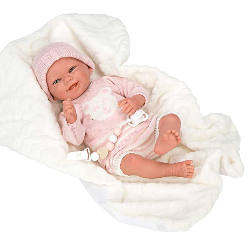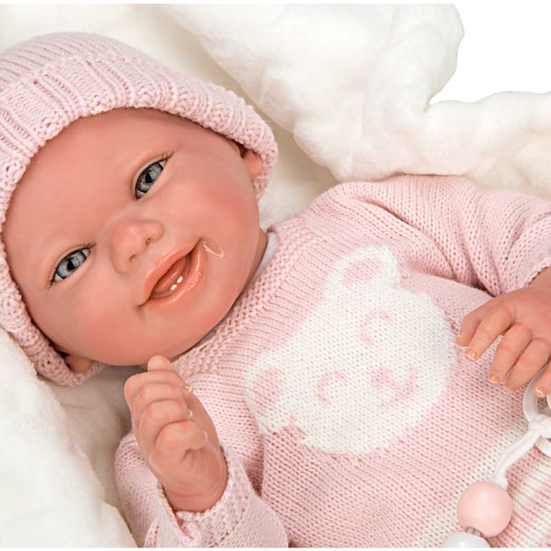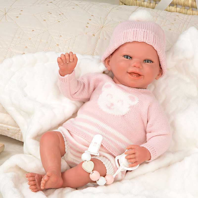 Кукла-бебе Адриана с розов плетен костюм и аксесоари – 40 см