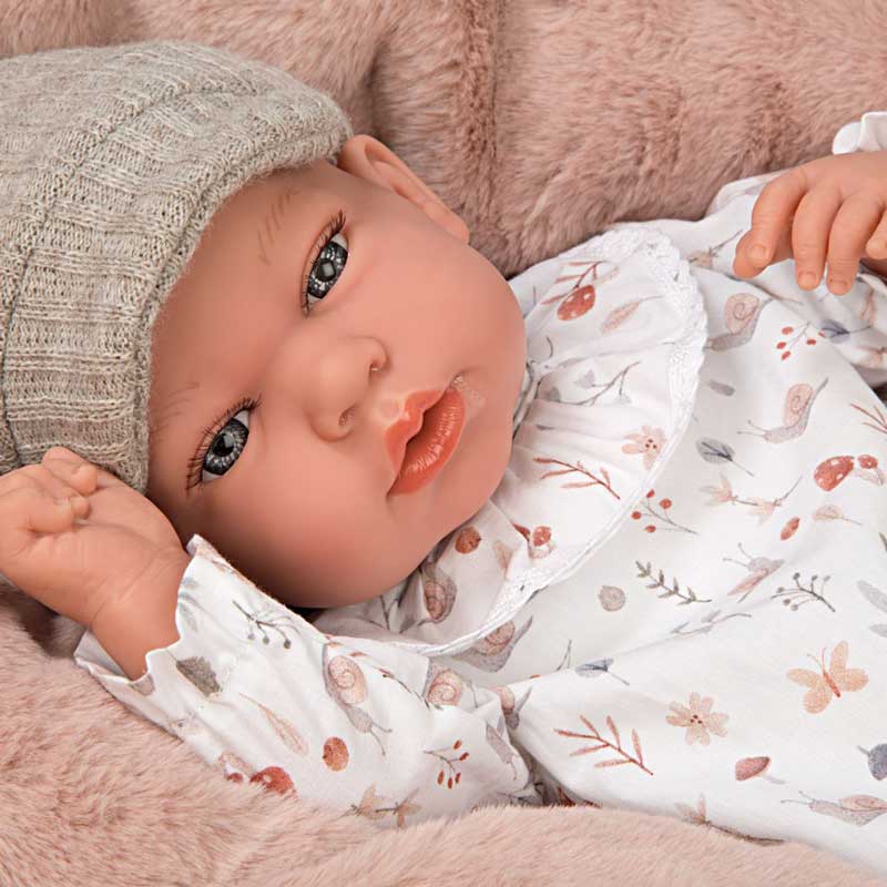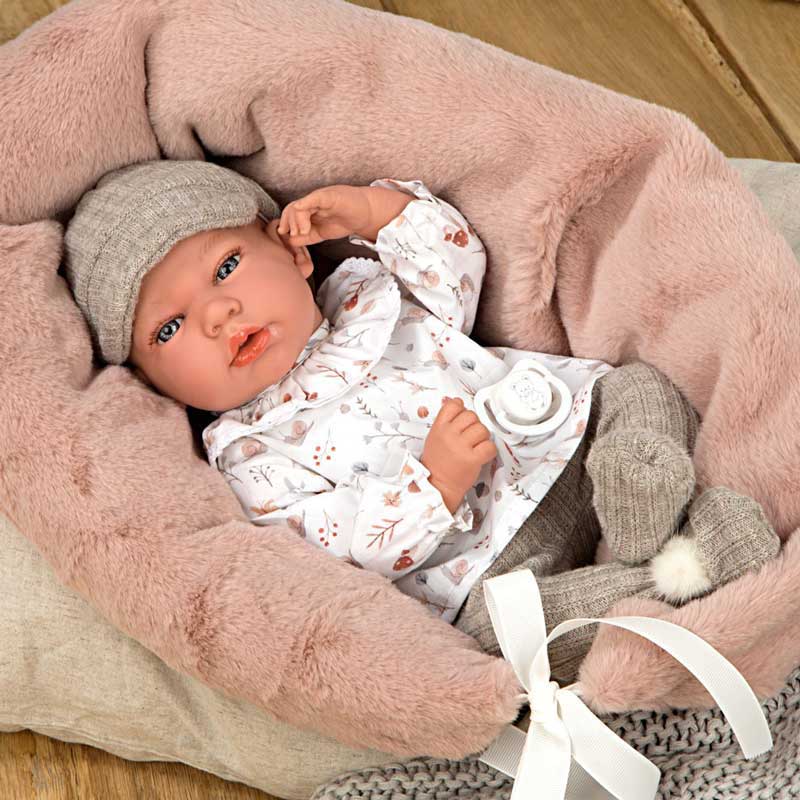 Ако търсите перфектния подарък за вашата дъщеря, която обича да си играе с кукли, реалистичната кукла-бебе Анди е чудесен избор. Тя е част от вълшебната колекция „Elegance“ на популярната испанскa марка Arias. Тази удивителна жива кукла с размери, които наподобяват истинско бебе, е изработена с безупречно внимание към детайла, като е постигнат невероятен реализъм. Играта на мама и бебе с нея, не само ще помогне на вашето момиченце да развие отговорност и грижа за другите, но също така ще обогати въображението ѝ и ще подобри речниковия ѝ запас с нови и нови думи. Вълшебството на живата кукла-бебе Анди не спира до тук – с височина от 40 см, меко тяло и гъвкави части като глава, крака и ръце, изработени от най-висококачествен винил, тя наистина оживява в прегръдките на малката си приятелка. Едно от нещата, които правят Анди специална, е ароматът на ванилия, който идва от нея, завладявайки сетивата и придавайки усещане за спокойствие и топлина. Облечена в изискан комплект от блуза и бежови панталонки, допълнени с шапчица в същия цвят, тя е готова за игра както у дома, така и за разходка сред природата. Придружена с удобна пухена възглавница за спокойни сънища и любимия си биберон, Анди е готова да стане най-добрата приятелка на вашето момиченце, давайки началото на безброй незабравими спомени и приключения.