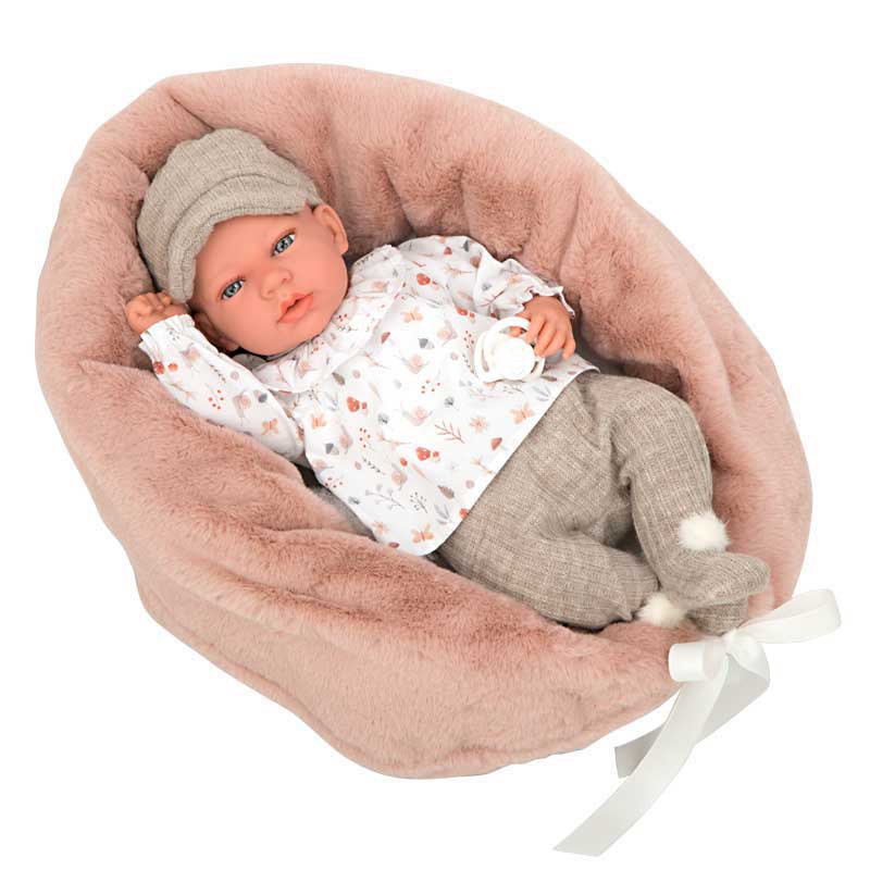 Кукла-бебе Анди в бежов комплект с аксесоари – 40 см, реално тегло