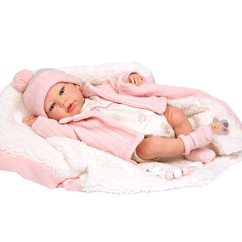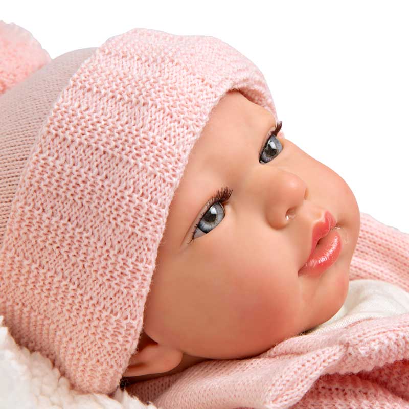 Ръчно изработена реалистична кукла-бебе Марта от известния производител Arais е от колекцията „Reborn“ и ще достави несравнимо удоволствие на вашето дете. Ако търсите запомнящ се подарък, тази кукла-бебе представлява чудесен избор. Възхитителната жива кукла-бебе Марта се отличава с изключително реалистично изображение, прецизно изрисувани гънки по кожата, зачервявания, усмивка и изразителни, запомнящи се очи. С винилови крайници и меко тяло, тя е идеална за малките детски ръчички. Деликатният аромат на ванилия, който се носи от нея, допълва чара ѝ и кара децата да не спират да я прегръщат. Марта е облечена подходящо за разходки сред природата, с розова жилетка и бяло костюмче, допълнено с плетена шапка. След преживените приключения и когато се прибере отново у дома, Марта обича да се сгушва в своето любимо меко одеяло.