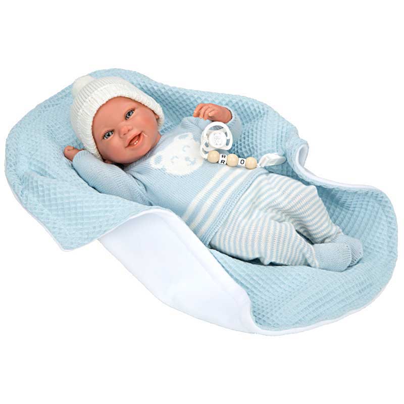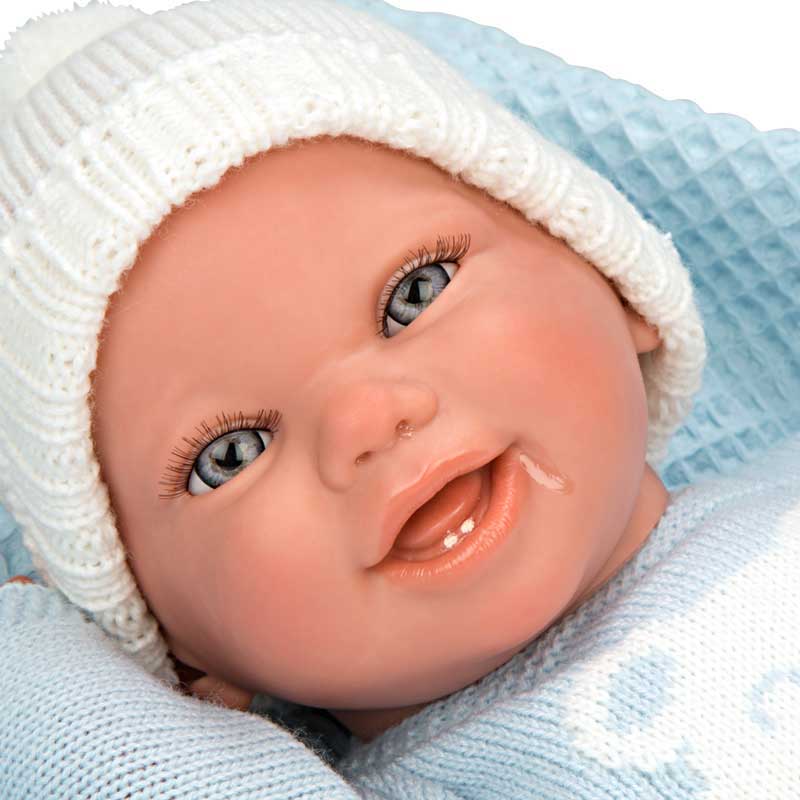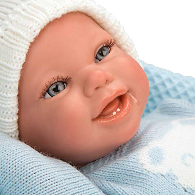 Запознайте се с очарователната жива кукла-бебе от серията „Reborn“ на испанската марка Arias. Ръчно изработено и толкова реалистично, Паоло е като малко произведение на изкуството. Тялото му е меко, а ръцете, крачетата и главичката му са от мек висококачествен винил, който излъчва нежен аромат на ванилия. Специално внимание е отделено на всеки детайл на живата кукла-бебе Паоло, като зачервявания и несъвършенства по кожата, а теглото му е като на истинско бебе. Облечен е в светлосин плетен костюм в допълнение с бяла шапчица. Паоло е идеален подарък за всяко дете, което ще се забавлява докато играе с него, гушка и приспива.