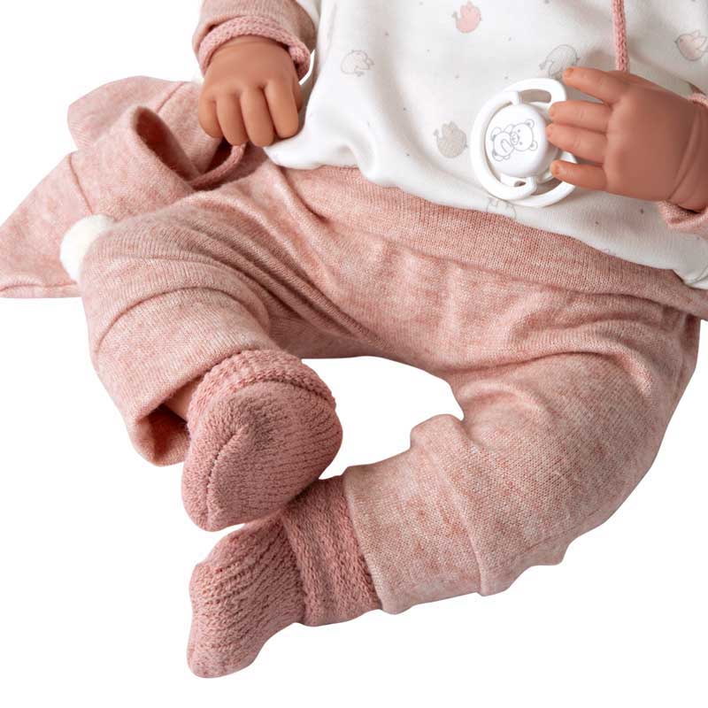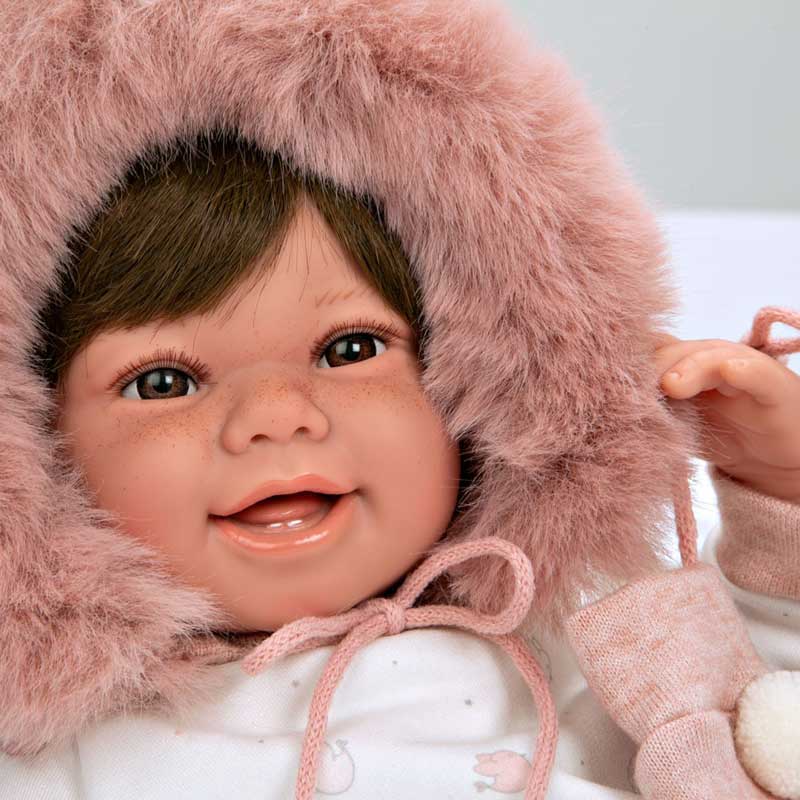 Тази невероятна жива кукла е висока 45 см, с меко тяло и движещи се крайници, които са изработени от висококачествен винил, приятен на допир. Вниманието към детайла при създаването на Зоуи е изумителен – от съвършените ръчно изписани черти на лицето до теглото ѝ, което наподобява истинско бебе. Очарователнита ѝ усмивка и нежния аромат на ванилия, който се усеща при прегръщане, ще накара всяко дете да се чувства специално и обичано. Зоуи е подходящо облечена за разходки, като е защитена от вятъра и студа, благодарение на пухкавата качулка и ръкавички в нежен розов цвят. Така облечена, куклата е не само за игра у дома, но и прекрасен другар в игрите навън, като привлича внимание и буди възхищение у всеки, който я види. Вашата дъщеря ще се гордее да разхожда Зоуи в парка и да я показва на своите приятели, създавайки незабравими спомени заедно. Вечерта, малките й ръце ще прегръщат куклата с любов, споделяйки топлина и безброй приказни сънища, потапяйки се в магията на безгрижното детство.