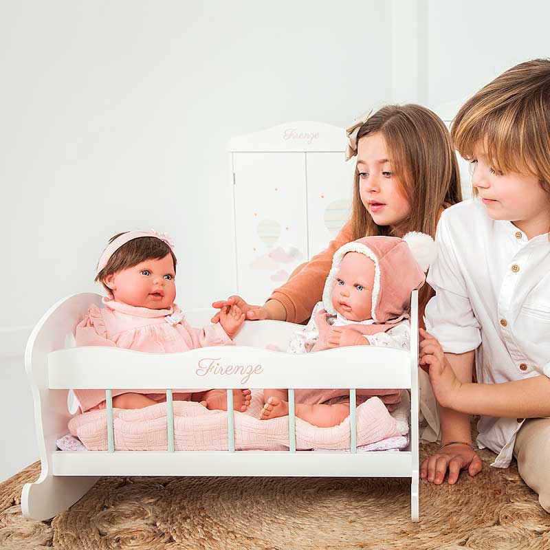 Великолепният дизайн на леглото-люлка за кукли „Firenze“ е подходящ за всяка детска стая. Вашите малки момиченца ще бъдат очаровани да приспиват своите кукли-бебета вечер и да им пеят приспивни песнички. Леглото – люлка за кукли „Firenze“ е произведено от испанската марка Arias, за чиято изработка са използвани висококачествени материали, които гарантират нейната издръжливост. В комплекта са включени подходяща възглавница и одеяло в нежен розов цвят.